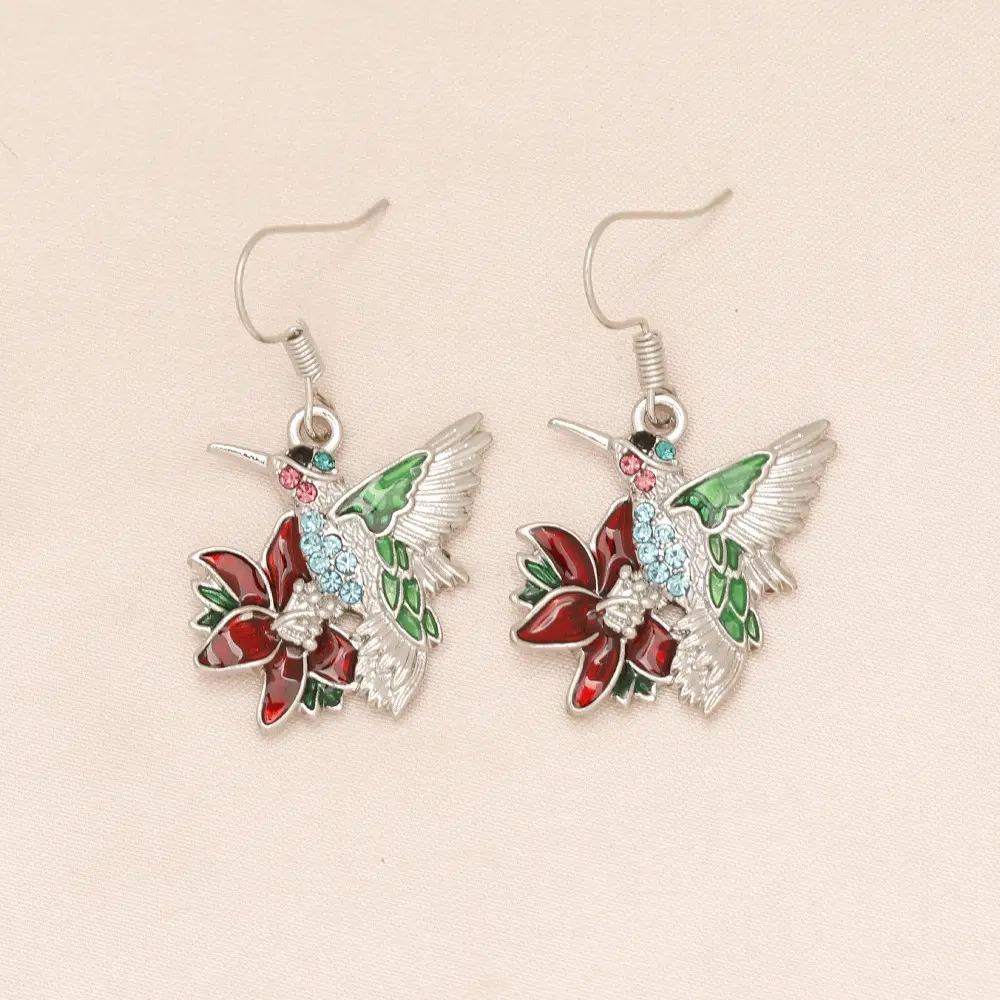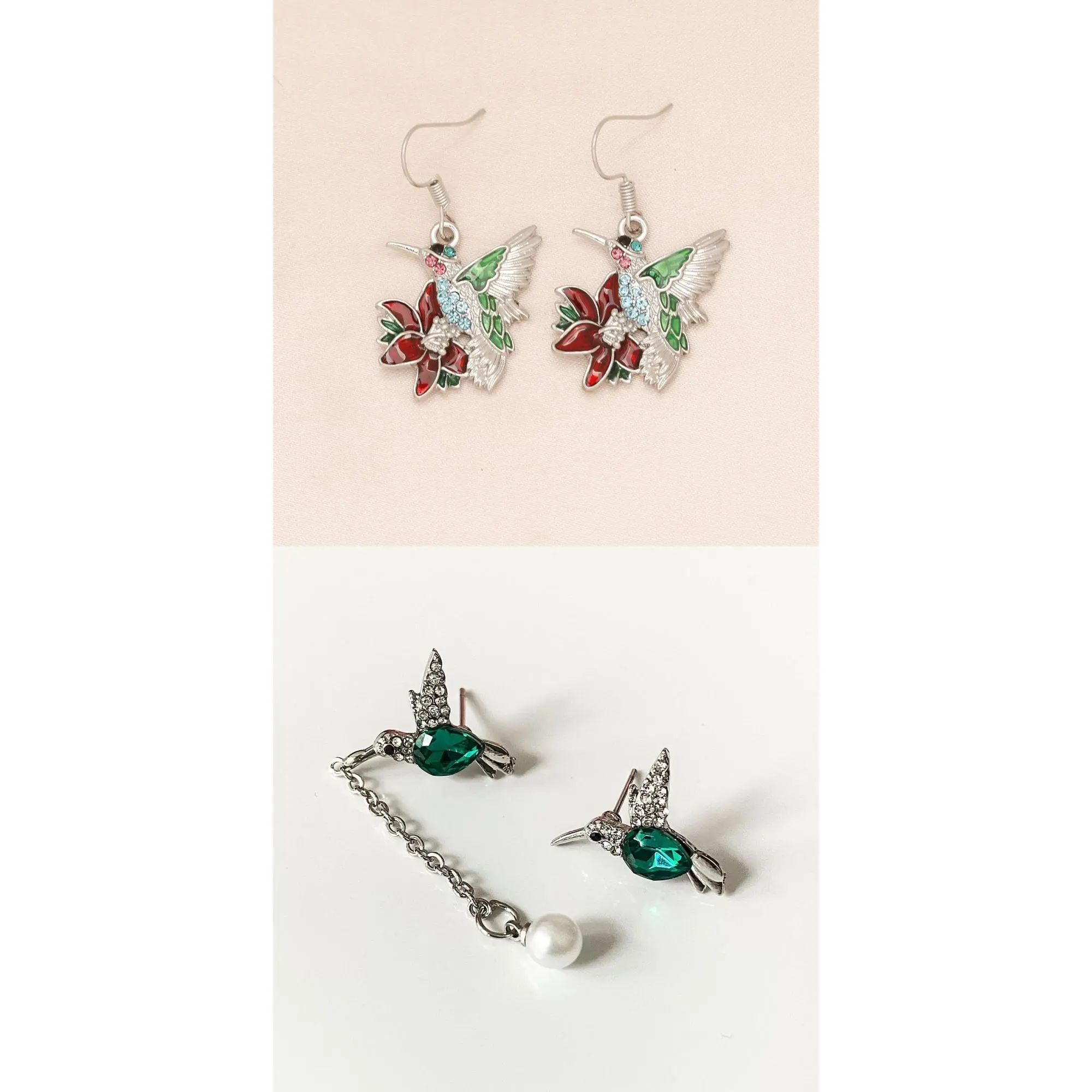 Colorful Hummingbird Full Diamond Pendant Earrings