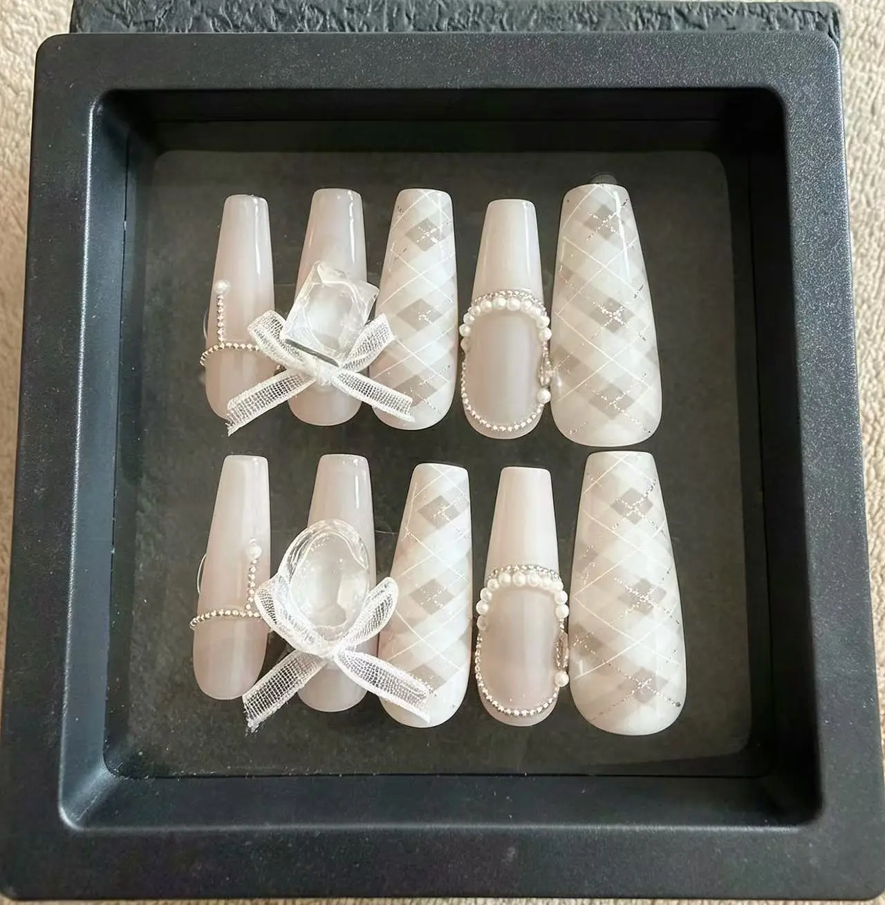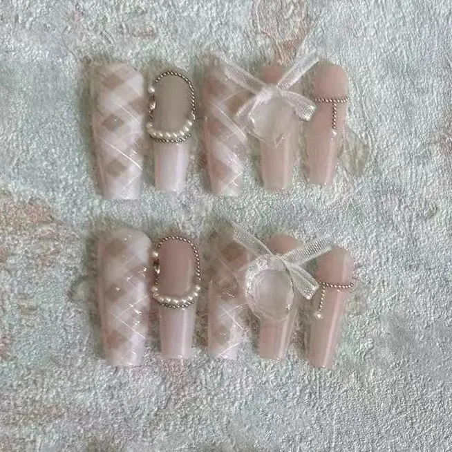 Handmade Press-On Nails French Style Reusable Fake Nails Cute Design