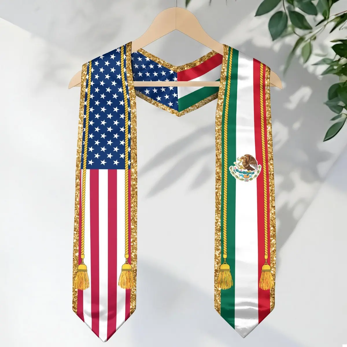 ·Style: Mexico USA Flag Graduation Stole / Dual Flag Sash