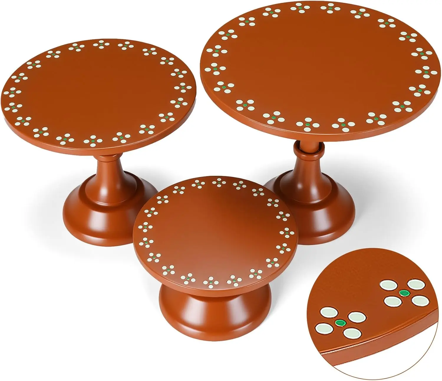 3 Set Mexican De Barro Cielito Lindo Cake Stand Party Decoration 8" 10" 12" Metal Orange round Dessert Pie Display Holder for Wedding Celebration Birthday Baby Shower Cinco De Mayo(Flower) Amyhill