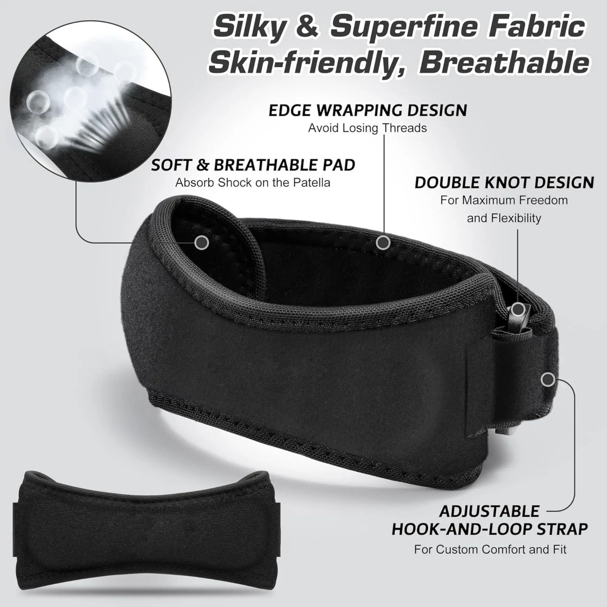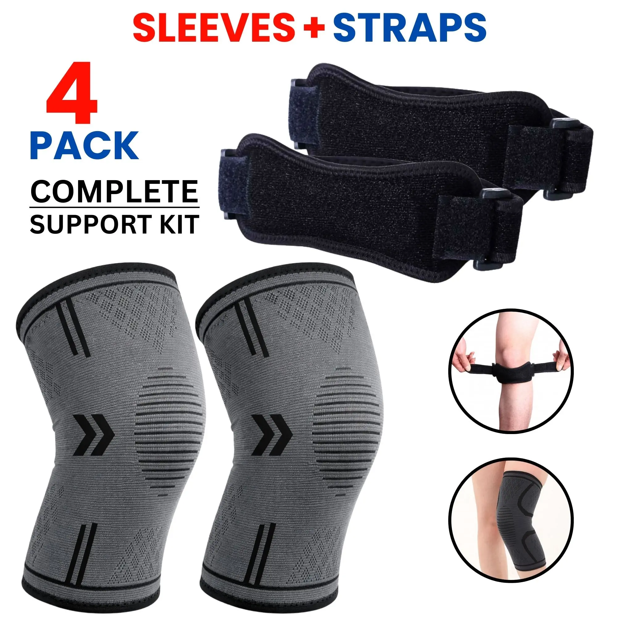 4-in-1 Support Set – Includes a pair of compression knee sleeves for overall joint stability, plus a pair of adjustable patella straps for focused kneecap support and pressure relief.