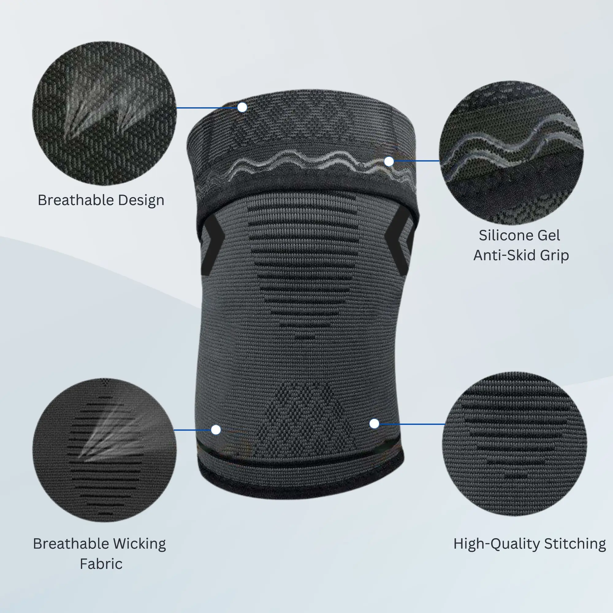 Compression Knee Sleeves – Deliver graduated compression to reduce swelling, improve blood circulation, and ease pain from arthritis, tendonitis, meniscus tears, ACL injuries, and joint stiffness.