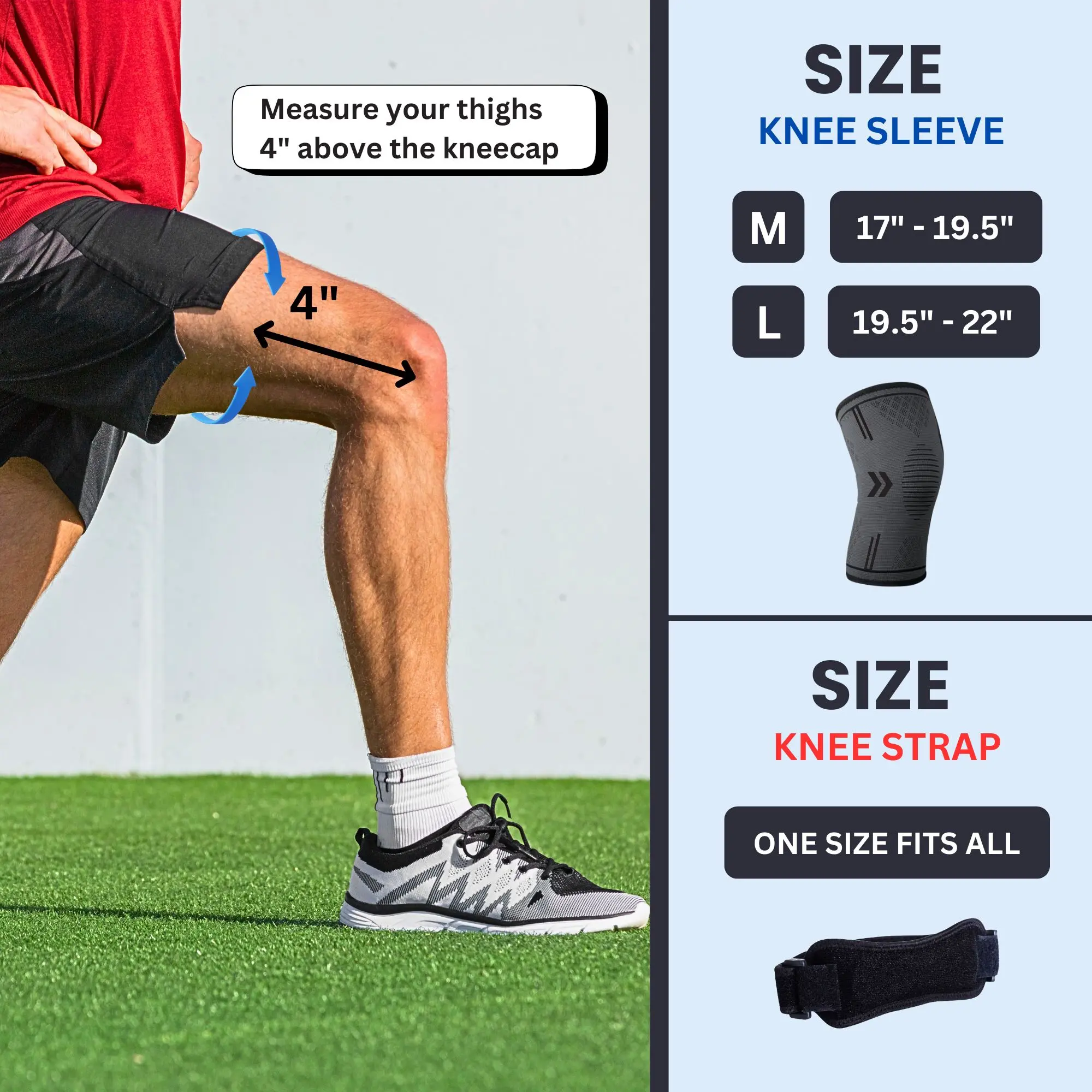Get complete knee protection with our knee support set, which includes 2 compression knee sleeves and 2 patella straps. Designed to work together or separately, this combo provides powerful compression, stability, and targeted kneecap support to help you stay active, prevent injuries, and recover faster.