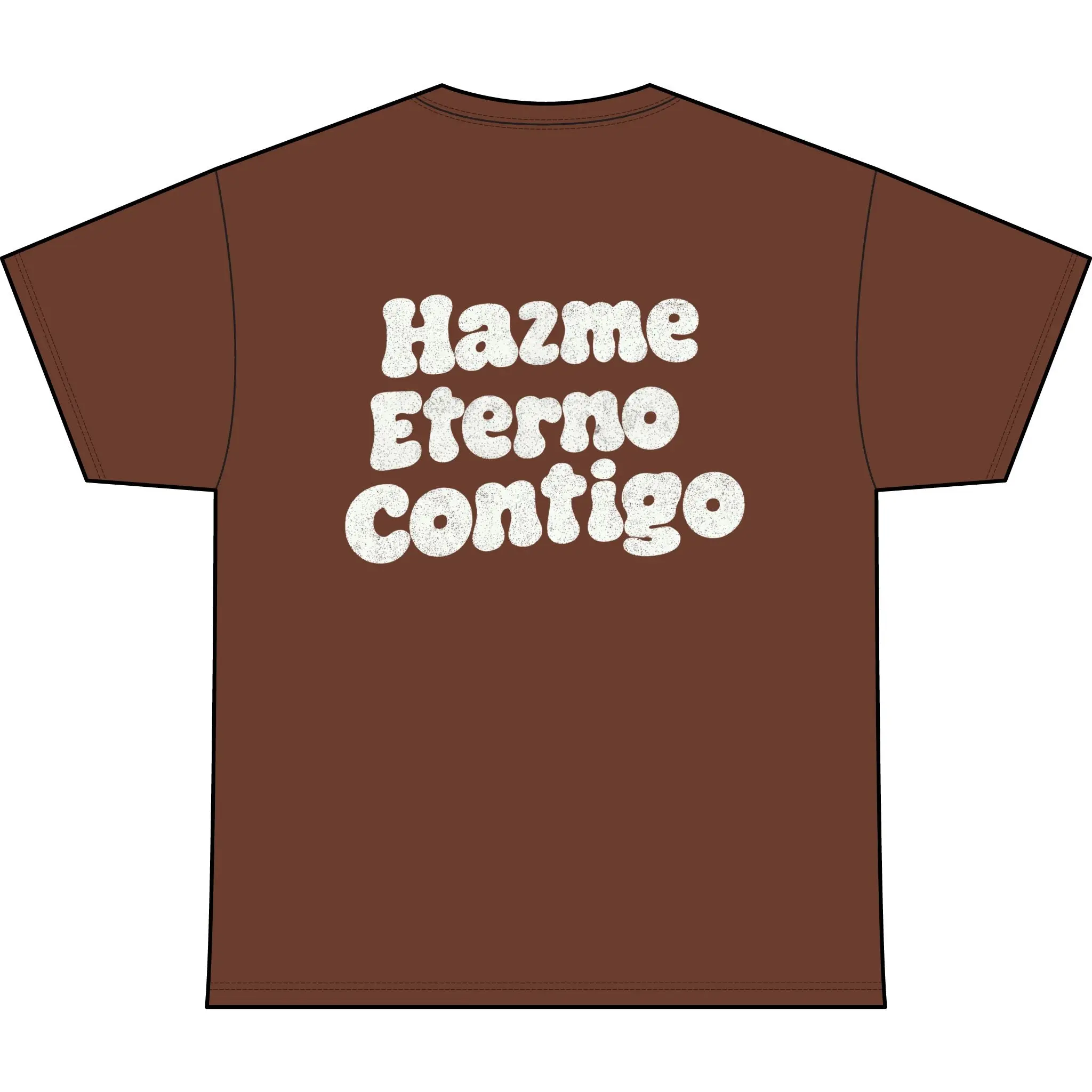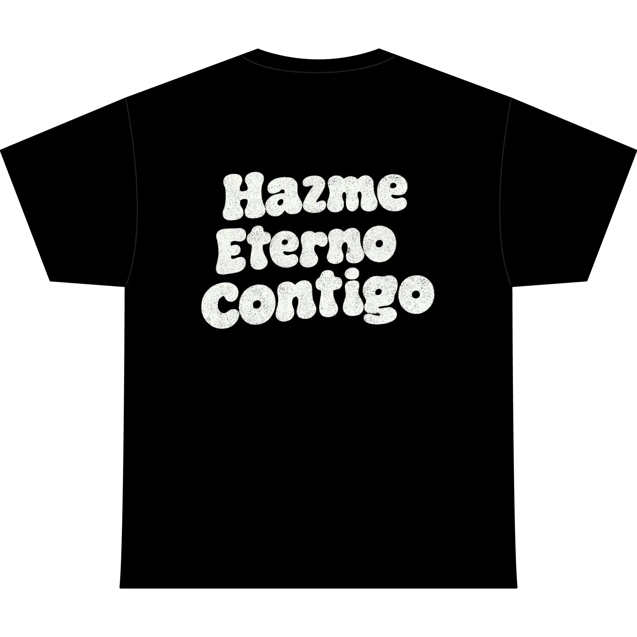 Five words that hold everything. Hazme Eterno is the prayer behind the brand — the ask at the center of why ETERNO exists. This bubble-letter heavyweight tee renders that prayer in a graphic you can feel across a room, worn by someone who means it quietly. A bilingual piece for a bilingual faith — spoken in Spanish because some things are said closest to the heart in your mother tongue.