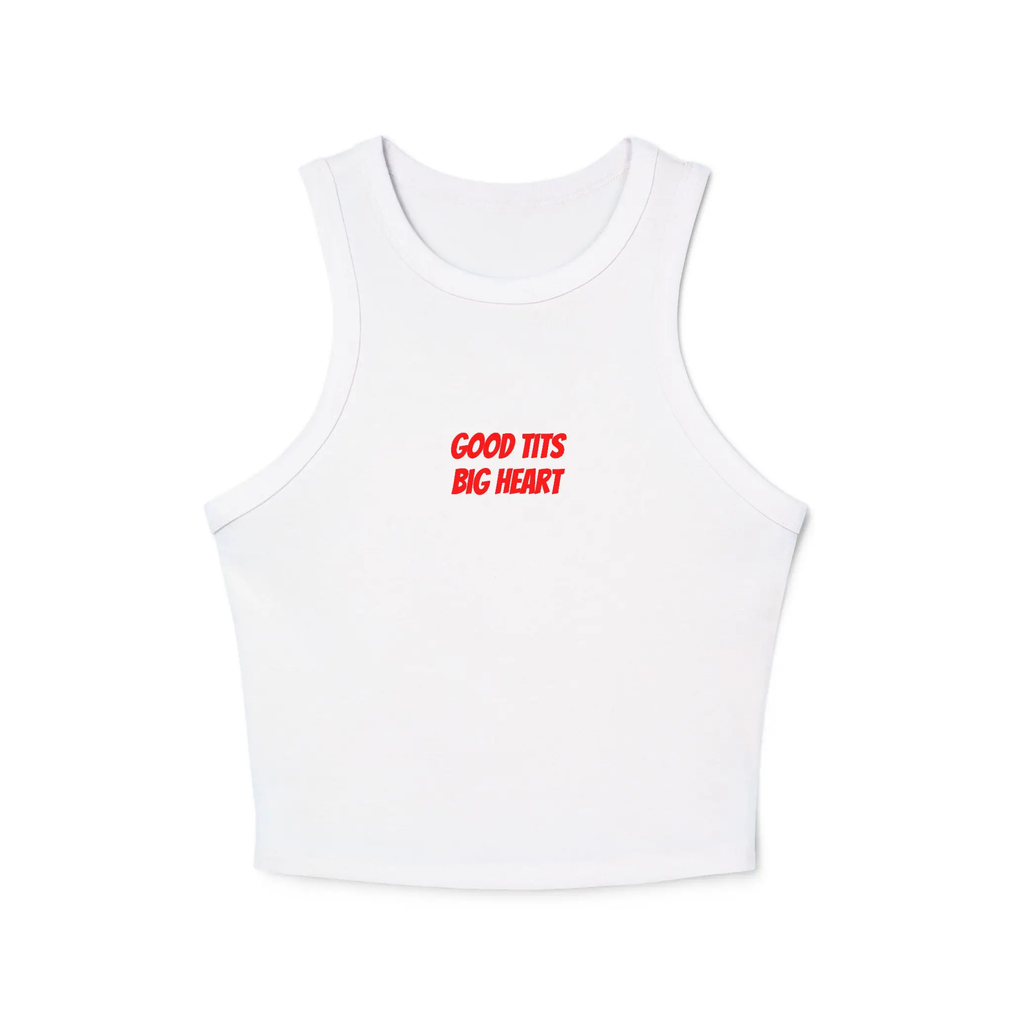 A sleek micro-rib racer tank that feels like a second skin. Lightweight and slightly cropped, it sits mid-length to flatter the waist while leaving room for layering. The high neck and fitted cut give a modern, confident silhouette — wear it under a denim jacket, with high-waisted jeans, or alone on a sunlit walk. The subtle rib texture adds visual depth and the soft Airlume cotton blend keeps the fabric breathable and smooth against skin. Printed with durable DTF ink, the small centered chest graphic becomes a cheeky, low-key statement that reads as playful rather than loud. Tear-away tags ensure nothing scratches or distracts from comfort during all-day wear.