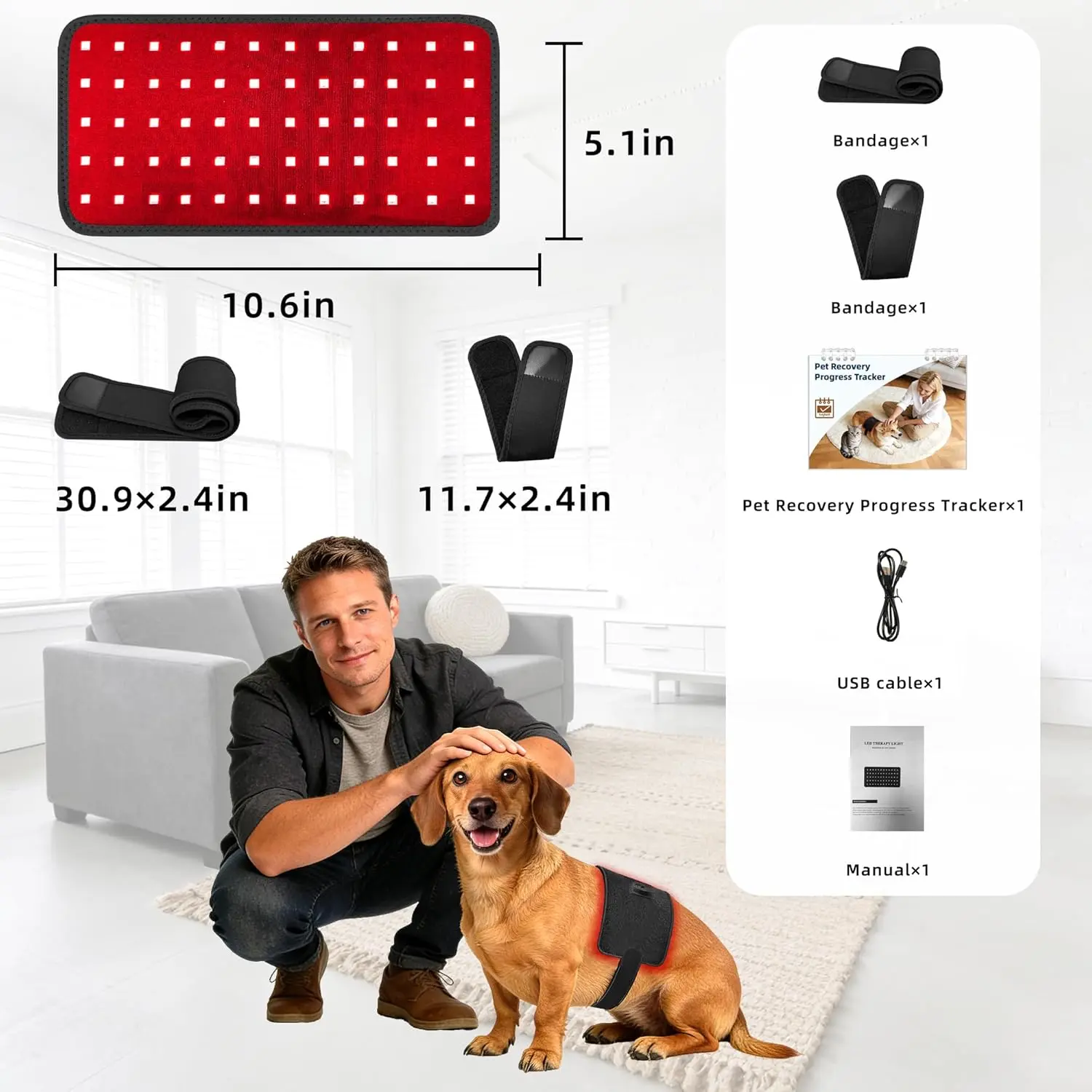 ·【Designed for Home Use】Lightweight and flexible, this infrared therapy pad is designed for pets of all sizes, including senior pets. Featuring a compact pad size, it comes with one long bandage and one short bandage, allowing a closer and more precise fit around smaller or delicate joint areas. Ideal for rest, relaxation, or post-activity comfort, it integrates easily into daily routines with soothing red light therapy mat support at home.