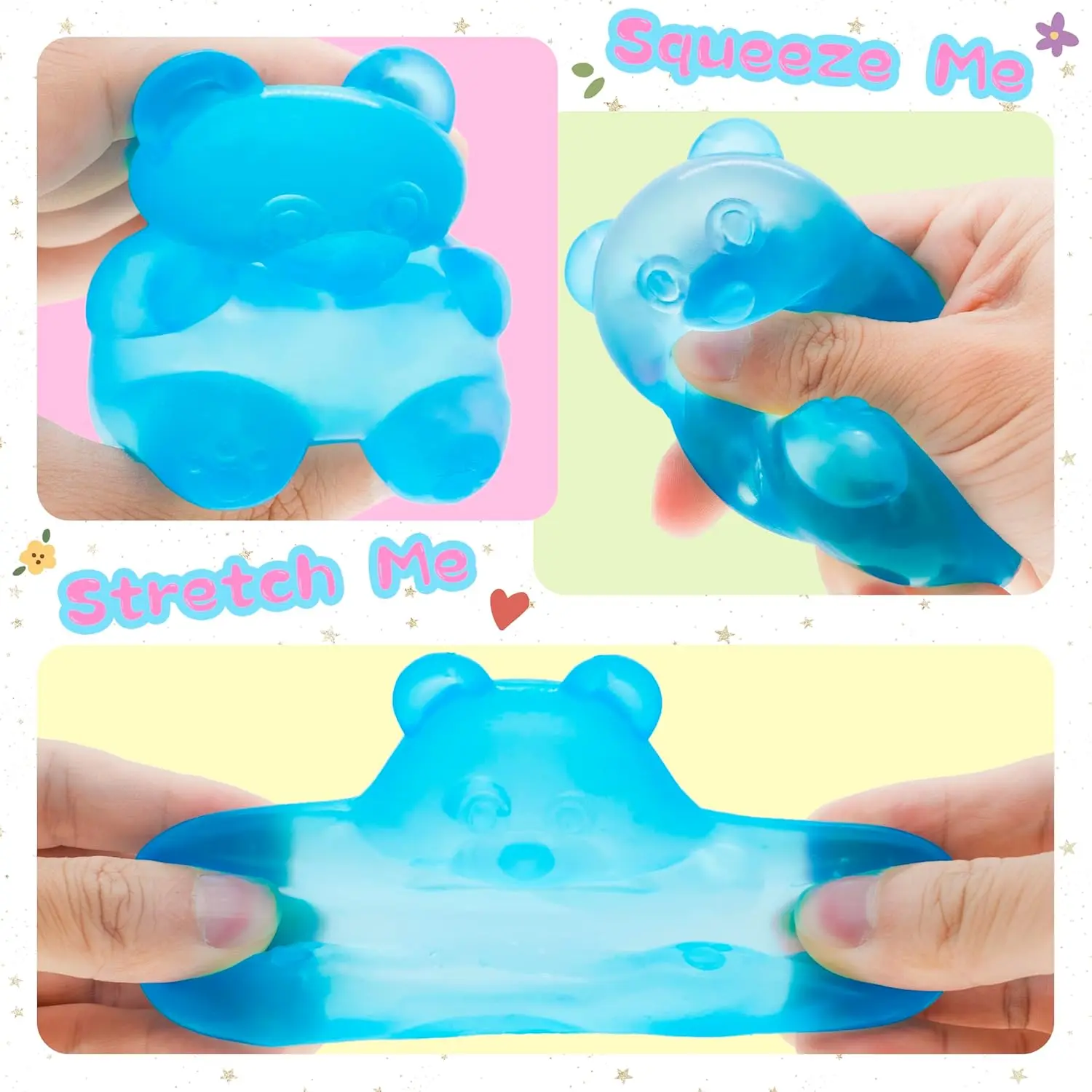 Enjoy a soothing sensory journey with our stress gummy bear. Soft, durable exterior and high-density, squishy filling withstand heavy use. Maintain delightful texture. Simply wash with water to keep them fresh and like new. Ideal for reducing fidgeting and other habits.