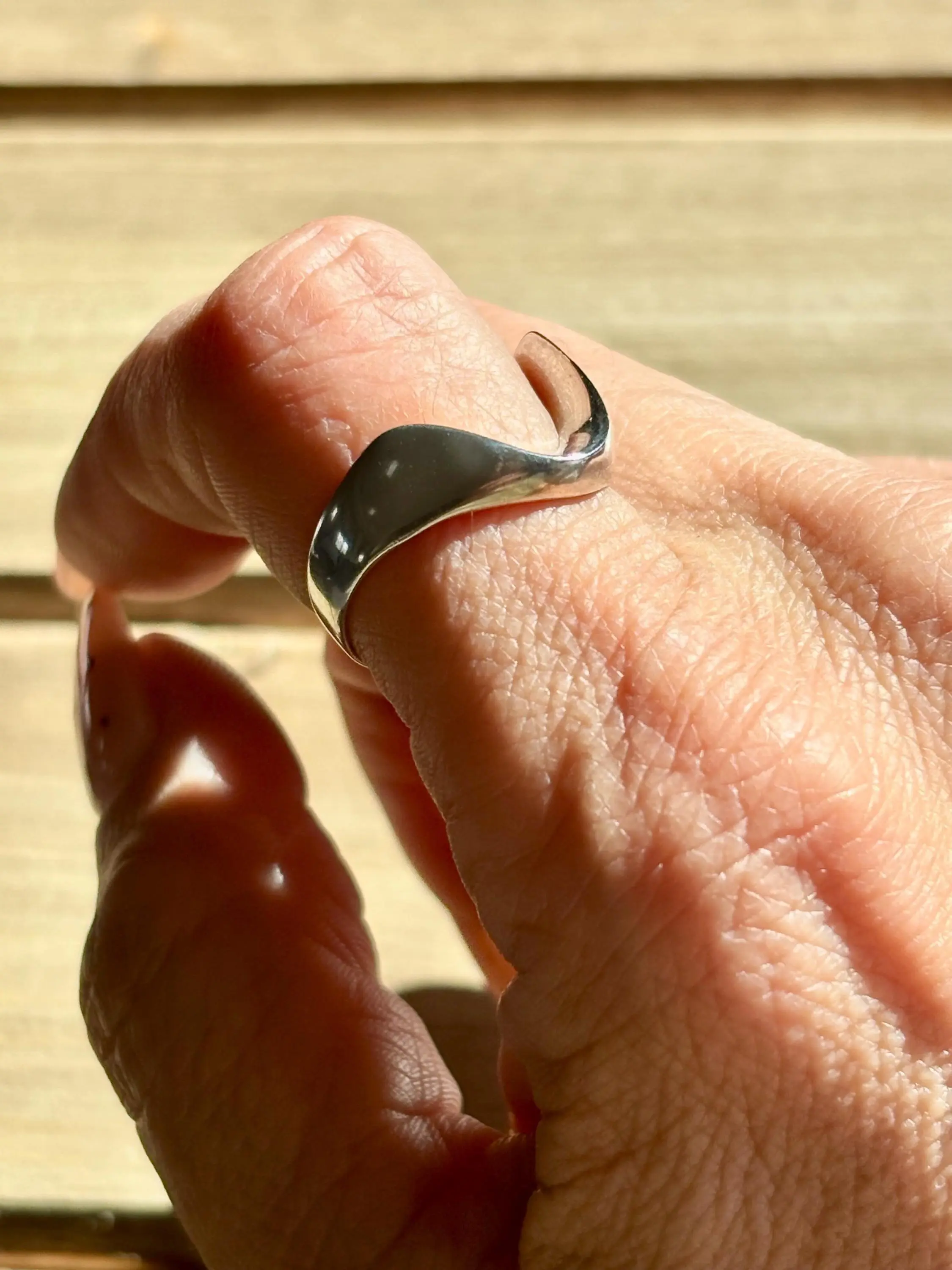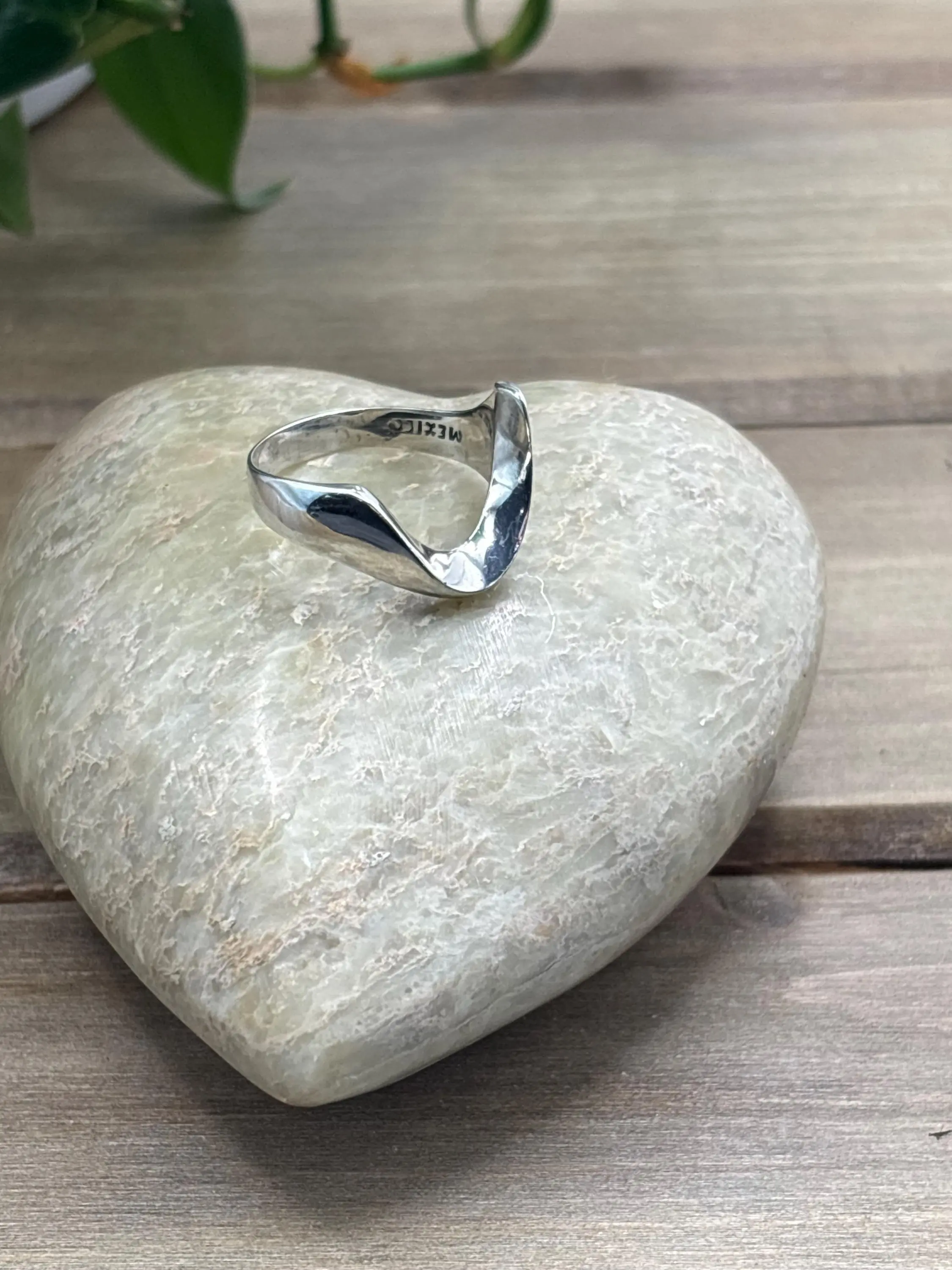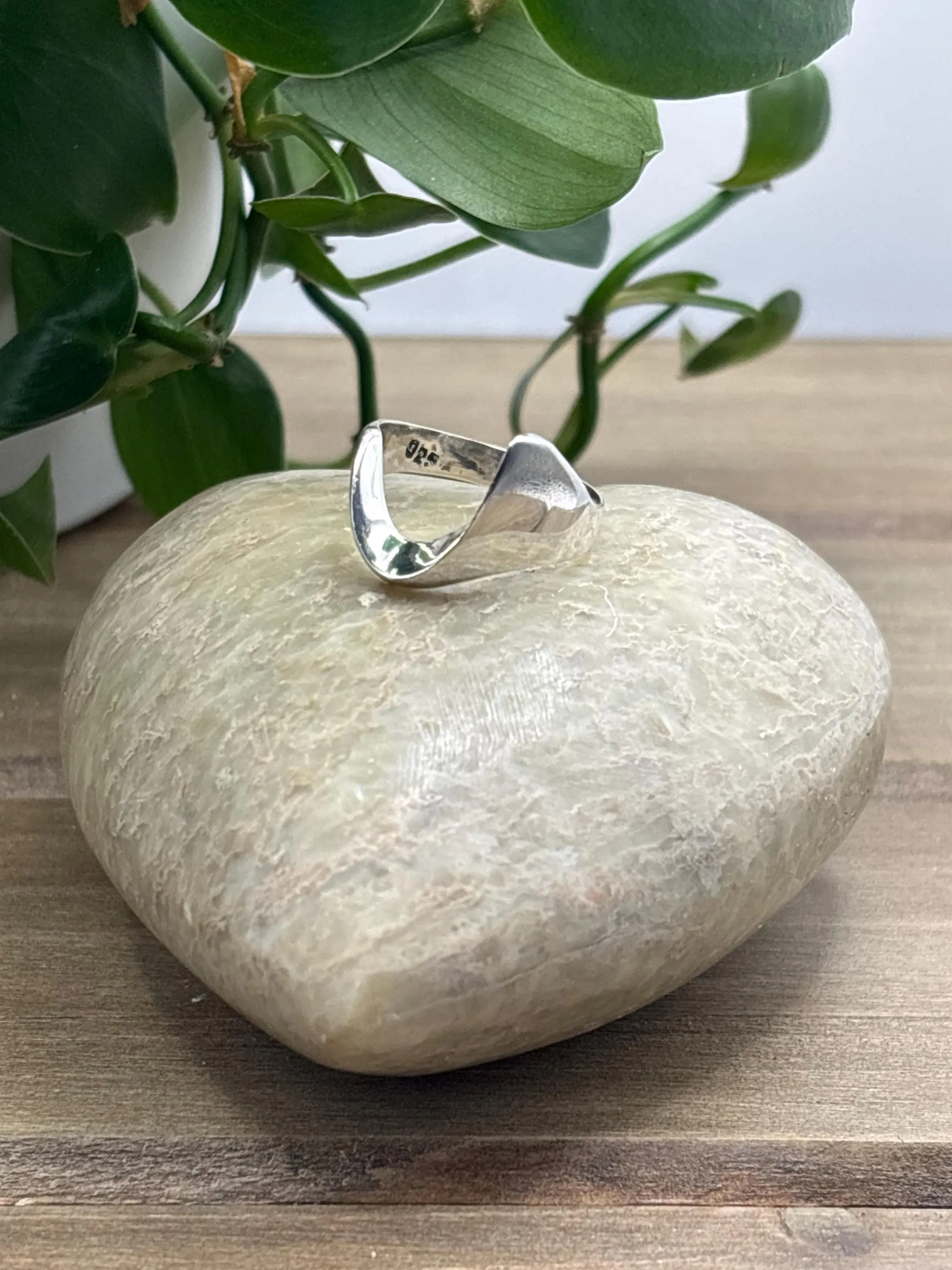This vintage sterling silver ring features a smooth, flowing design that wraps gently across the finger. No stones, no extra detail — just clean lines and a soft, sculptural curve that catches the light beautifully.
