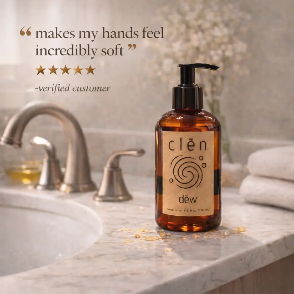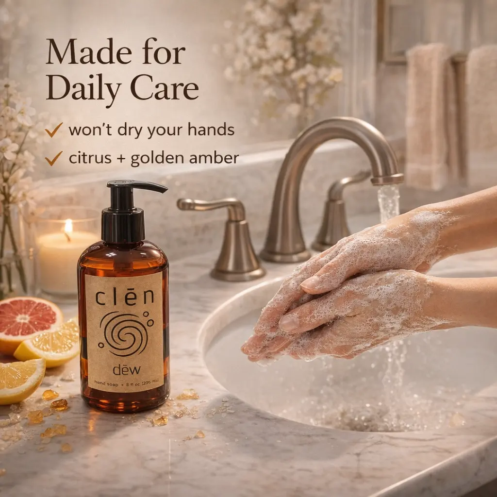 Let dēw (citrus + golden amber) 8 oz turn everyday rinses into a soft luminous moment — ideal for sink-side all season long.
