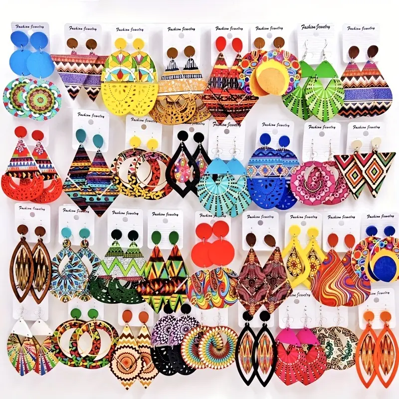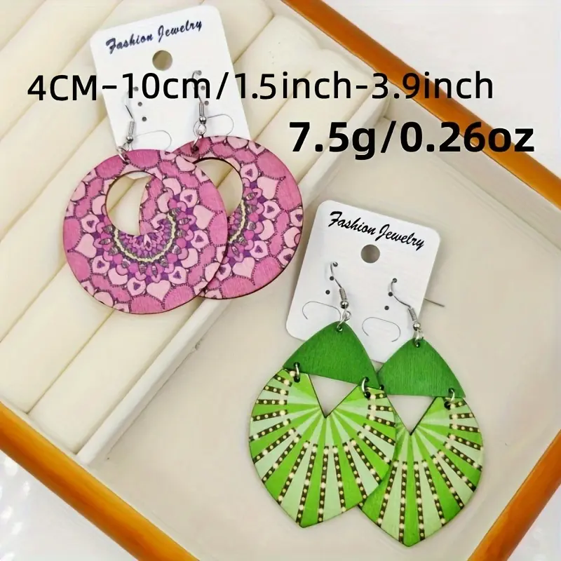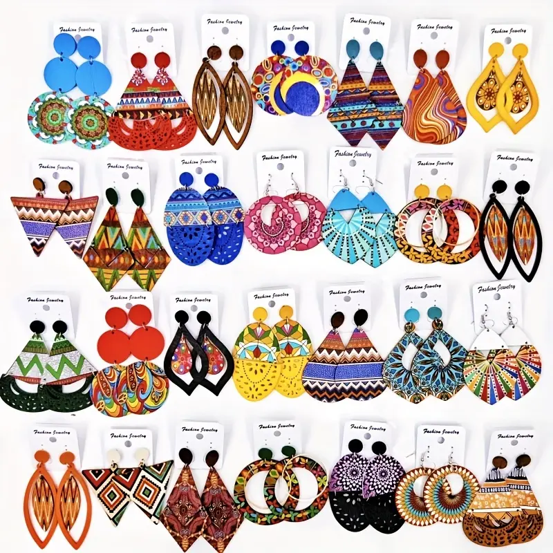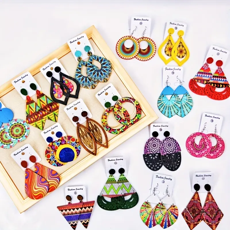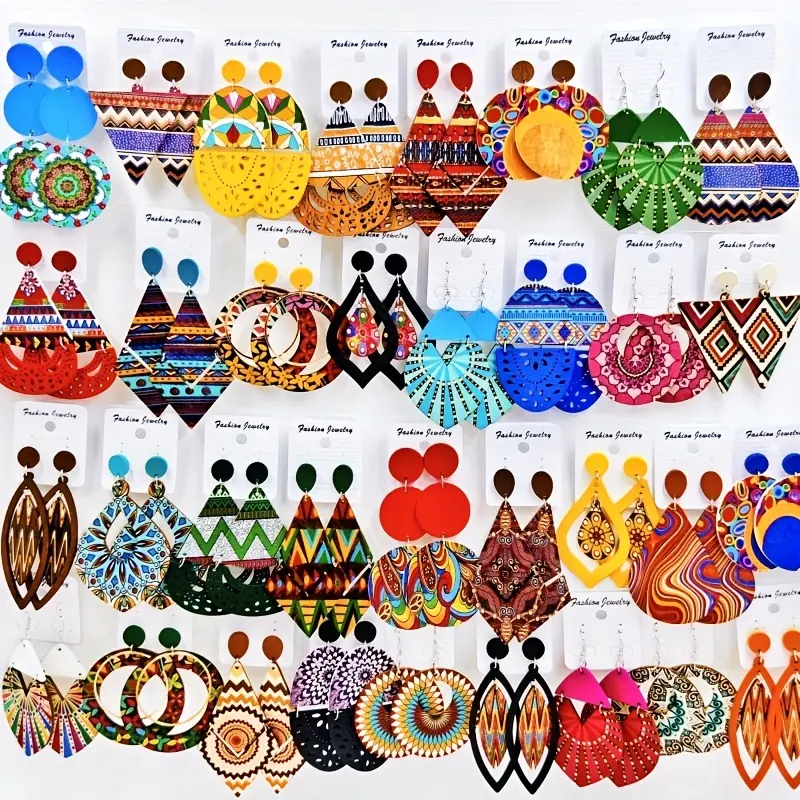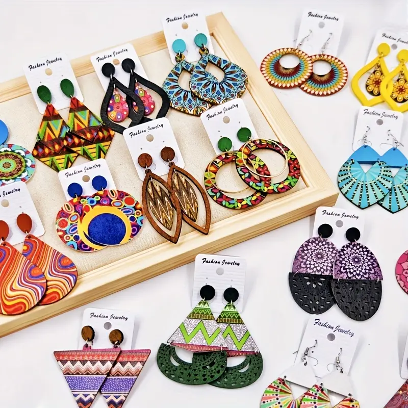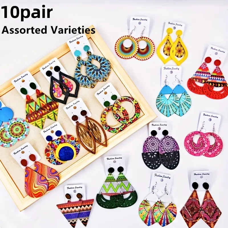 10/20 pairs/pack Women's Bohemian Style Wooden Earrings, Fashionable Mixed Styles and Sizes Ethnic Circle Earring Set Wholesale