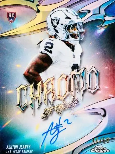 Where the game’s biggest names meet iconic Chrome shine. Featuring a dynamic mix of rookies, superstars, and legends, these coveted autographs are amplified by the full Chrome rainbow—including ultra-rare, low-numbered parallels built for the ultimate chase. Look for signatures from Tom Brady and Barry Sanders, current stars like Josh Allen and Jahmyr Gibbs, and rising talent such as Jaxson Dart and Tetairoa McMillan.