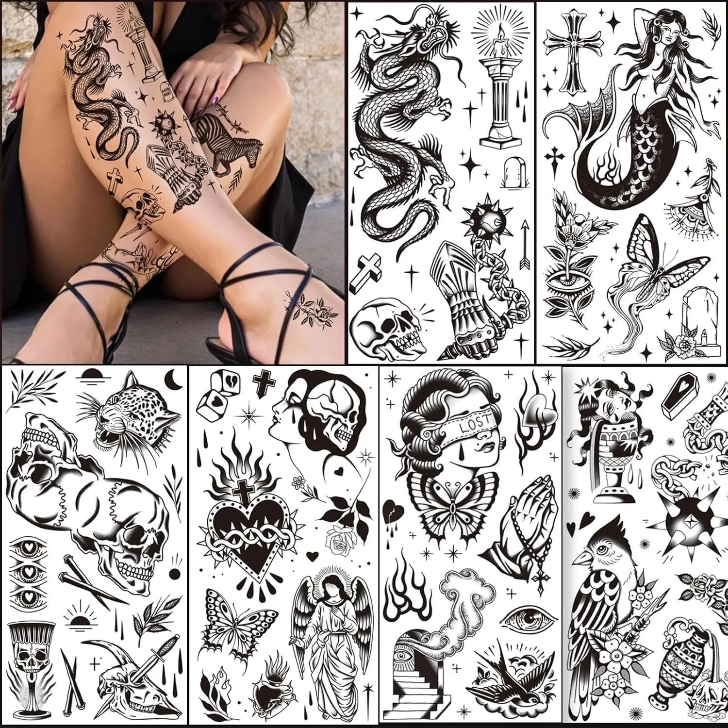 ·Package Include: : Black American Old School Temporary Tattoos