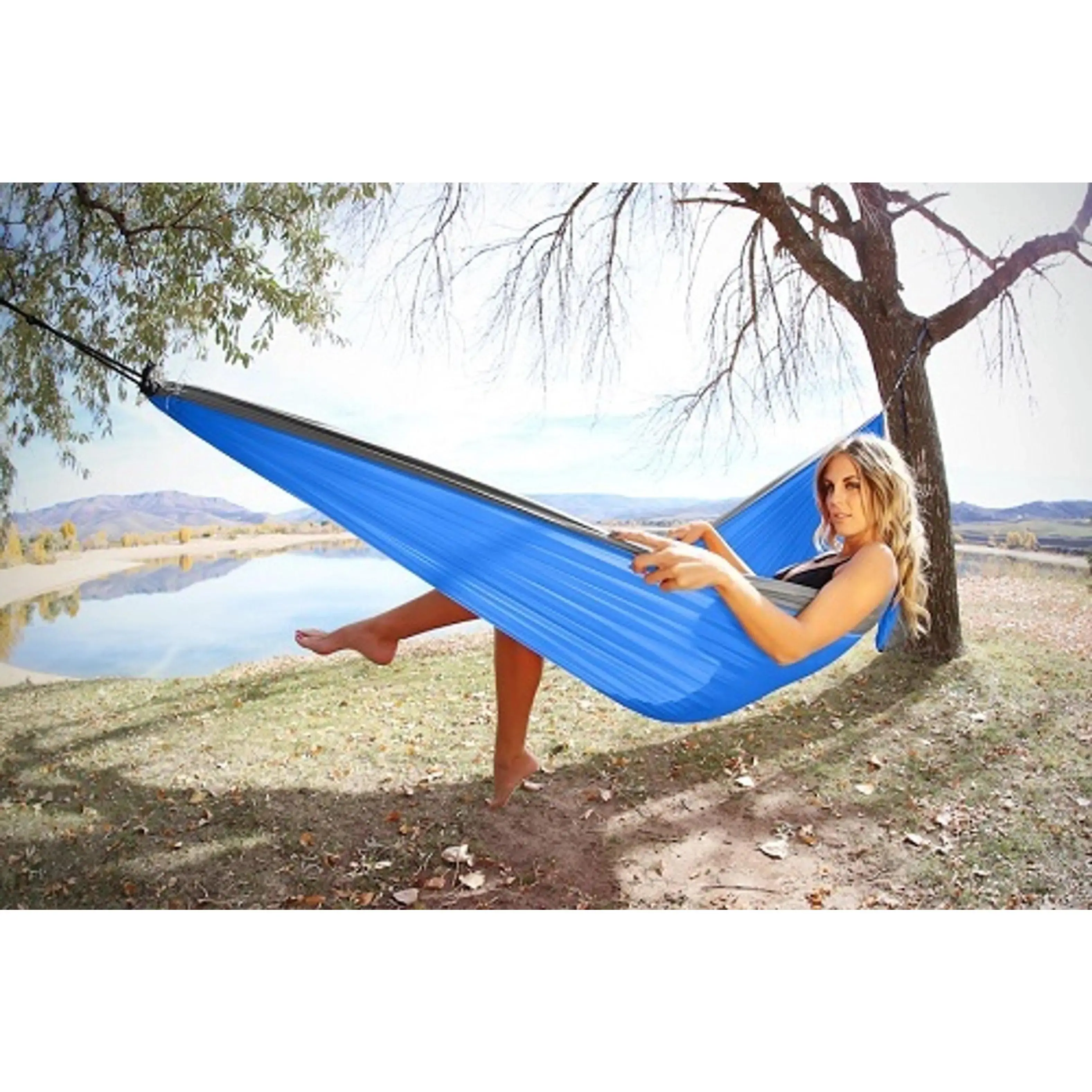 Our Portable Camping Hammock with Carry Pouch is the perfect solution that's stitched to last! Equipped with strong tie topes and made of durable, but lightweight material perfect for sleeping on your next camping trip, home backyard adventure, and more!