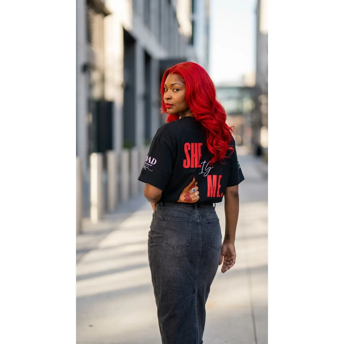 Designed for women who are building their confidence, choosing themselves, and walking boldly in purpose, this statement tee blends motivation, style, and attitude into one unforgettable look.