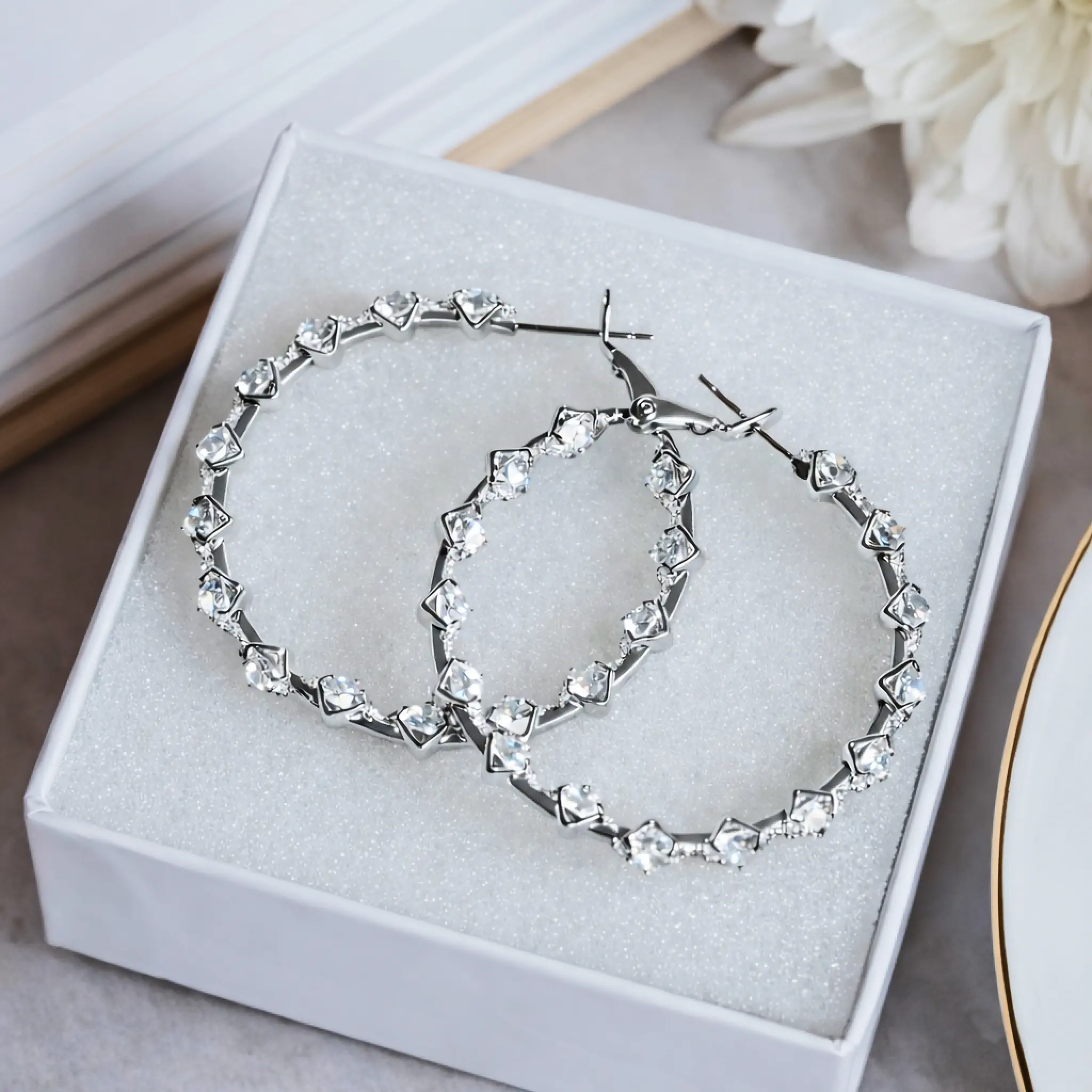 Minimalist Silver Hoop Earrings | CZ Crystal Earrings | Diamond Looks Sparkly Hoops | Jewelry Gift For Women