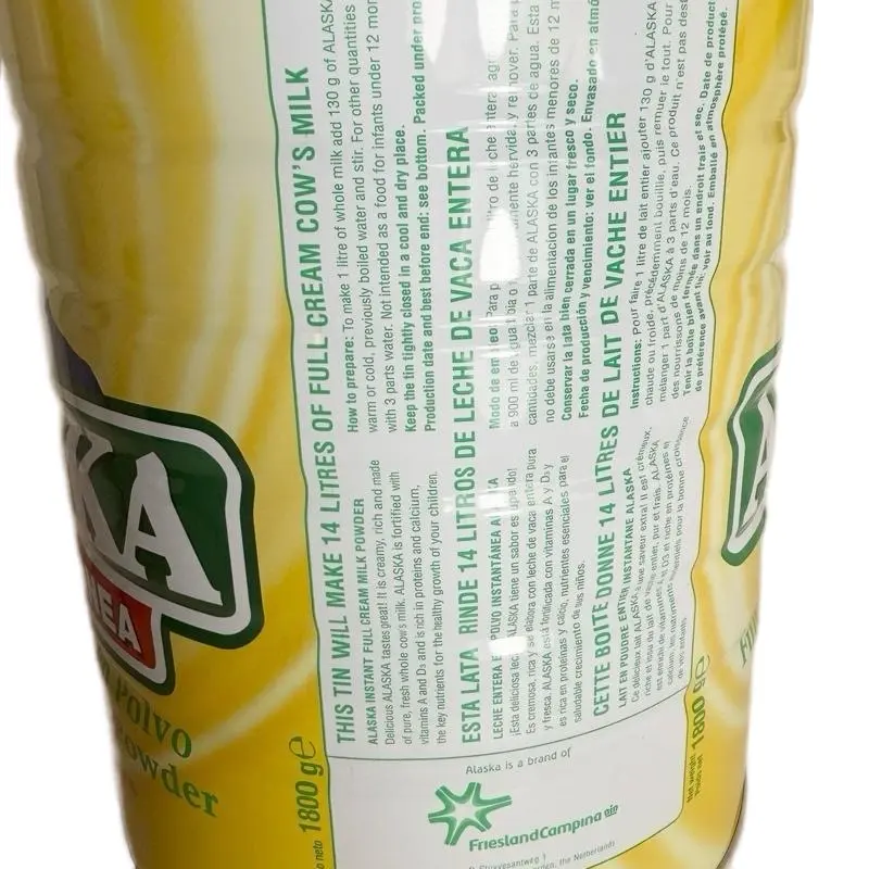 Discover the Alaska Instant Full Cream Milk Powder, a nutritious choice for your daily needs. This 1800G pack is enriched with essential Vitamins A and D3, ensuring you get the necessary nutrients. Perfect for those seeking a convenient milk powder option, it offers the benefits of full cream milk in a powder form.