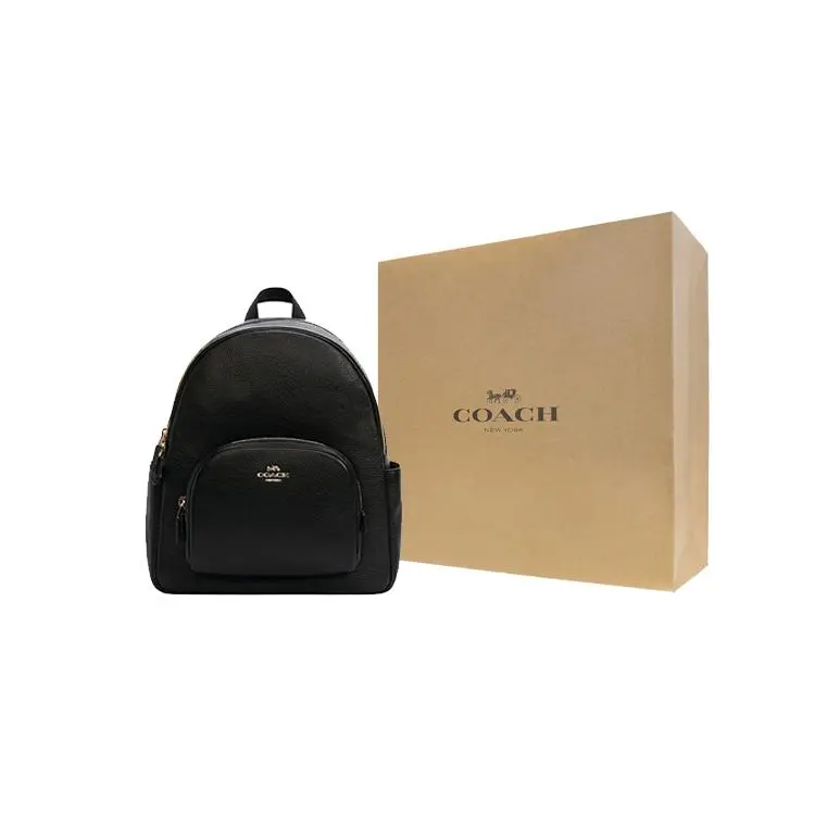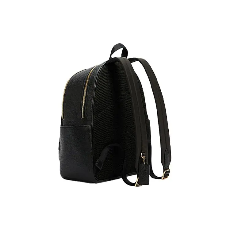 COACH Court 27 Zip-Top Casual Leather Backpack – Large Size for Women, Black