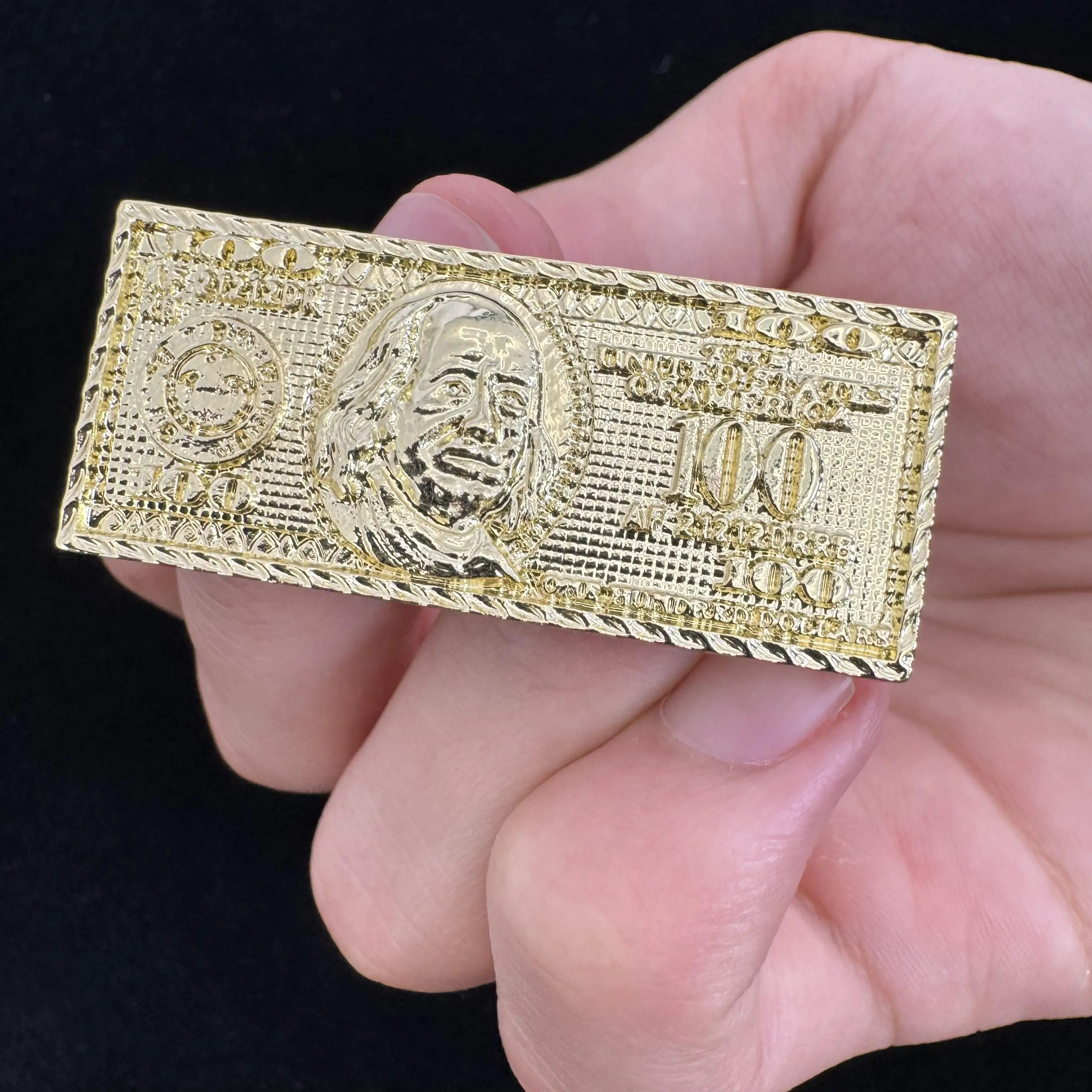 ✨Unique Design: This hip-hop style ring features a 14k gold plated 100 dollar bill design.It includes a nugget detail, making it a standout piece.Perfect for street fashion enthusiasts, this ring is ideal for bold everyday wear.It comes in two sizes for a comfortable fit on both fingers.