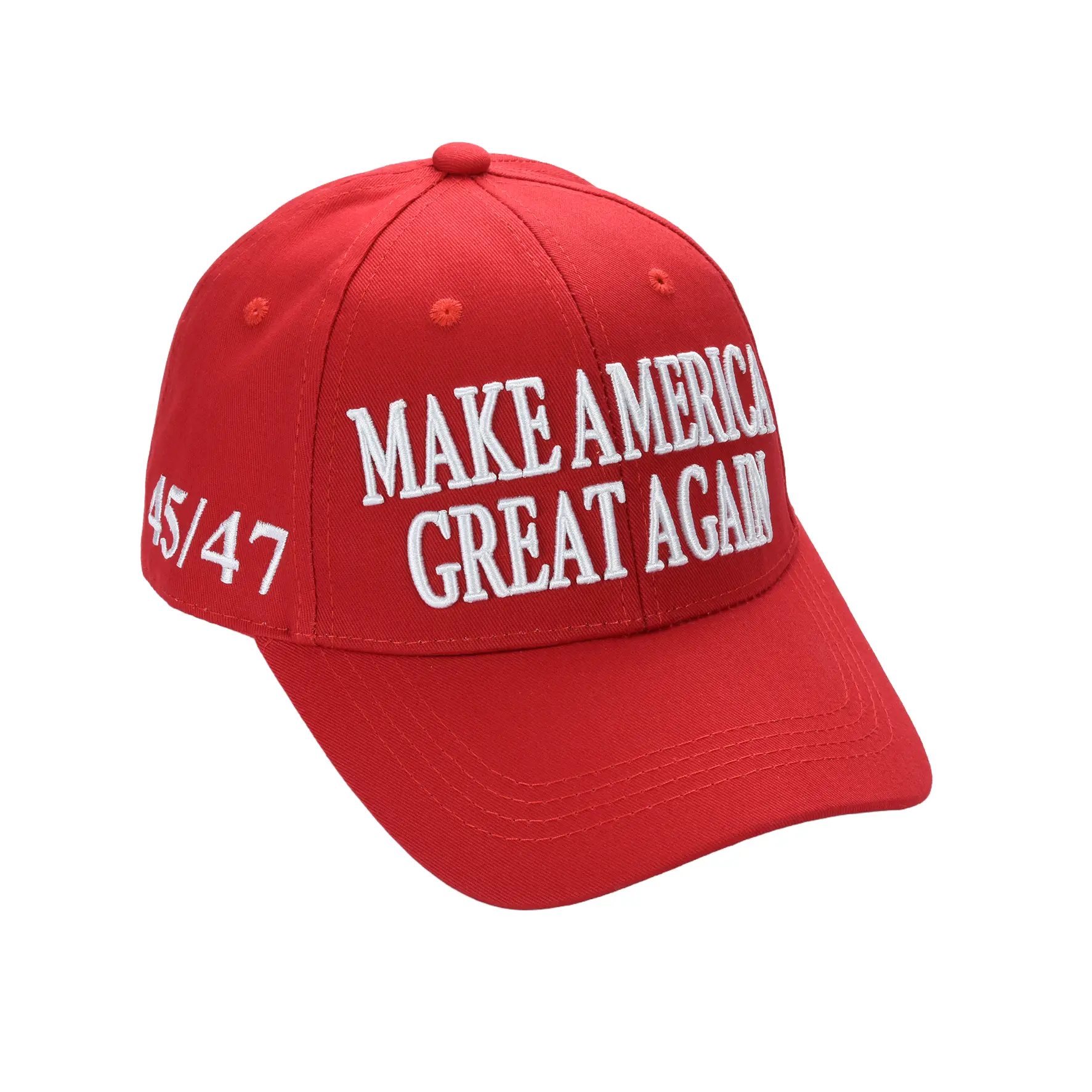 ·Embroidered “MAKE AMERICA GREAT AGAIN” slogan in crisp white