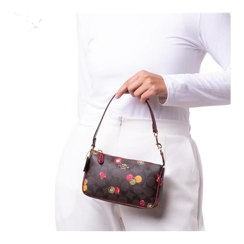 Design Concept: Inspired by vintage fruit motifs and 1950s Americana, this bag features a playful yet refined floral-fruit print on coated canvas—a modern reinterpretation of Coach’s heritage “Pebble Leather” aesthetic. Its compact crossbody shape balances functionality and fashion-forward attitude.