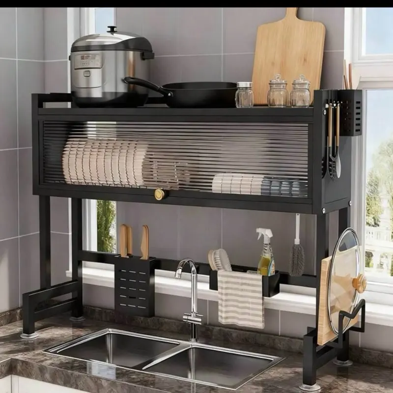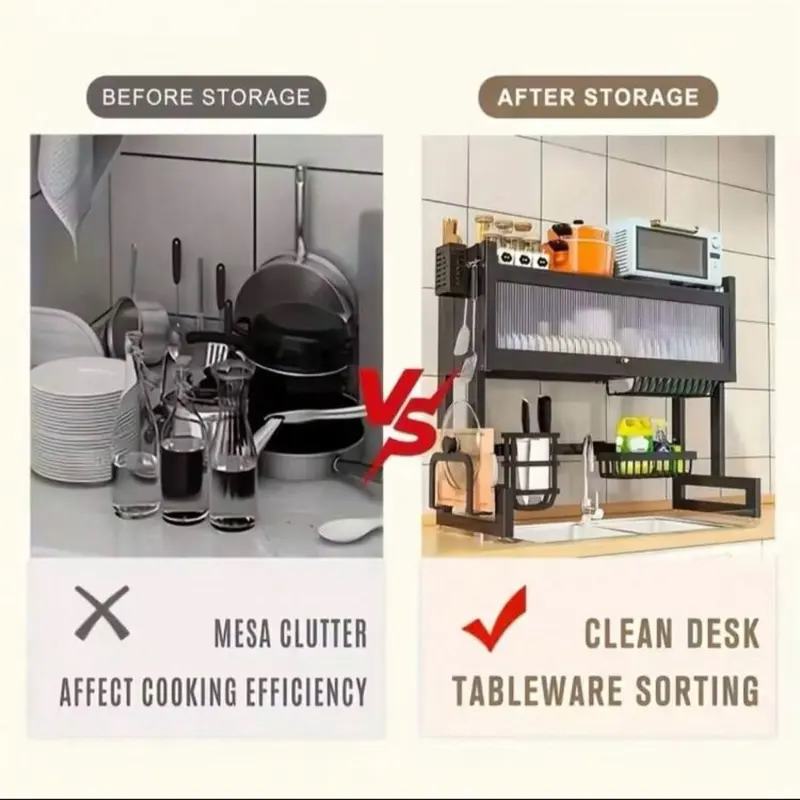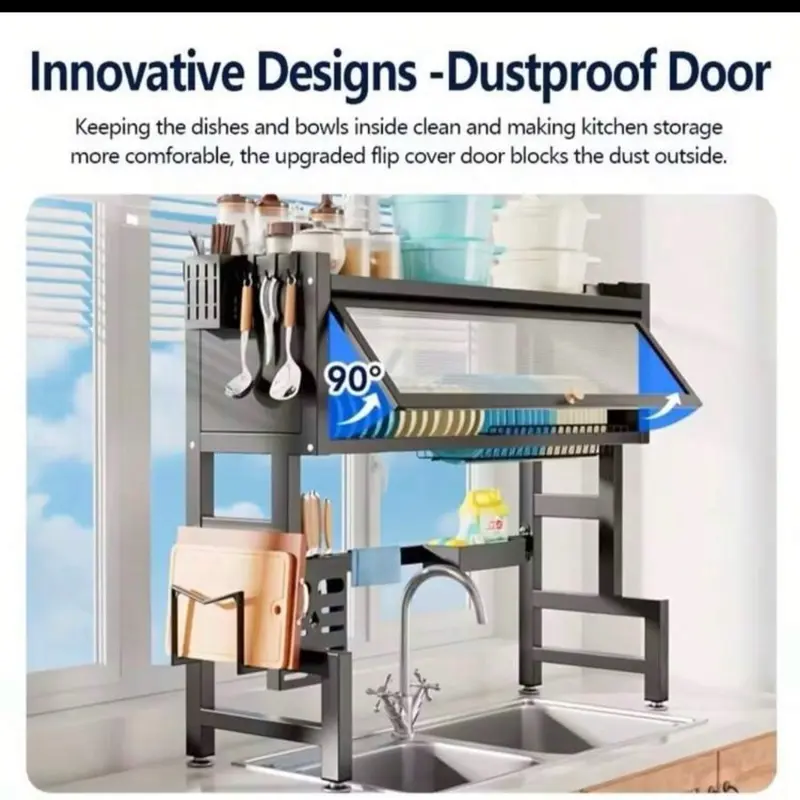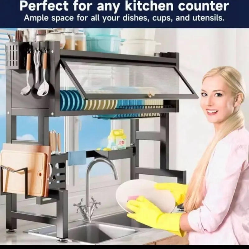Over The Sink Dish Drainer Drying Rack 3 Tier Over Sink Dish Rack For A Tidy Kitchen Sink Shelf Organized Space-Saving Dish Rack With Cover For Dishes, Glasses, Bowls, And Cutlery