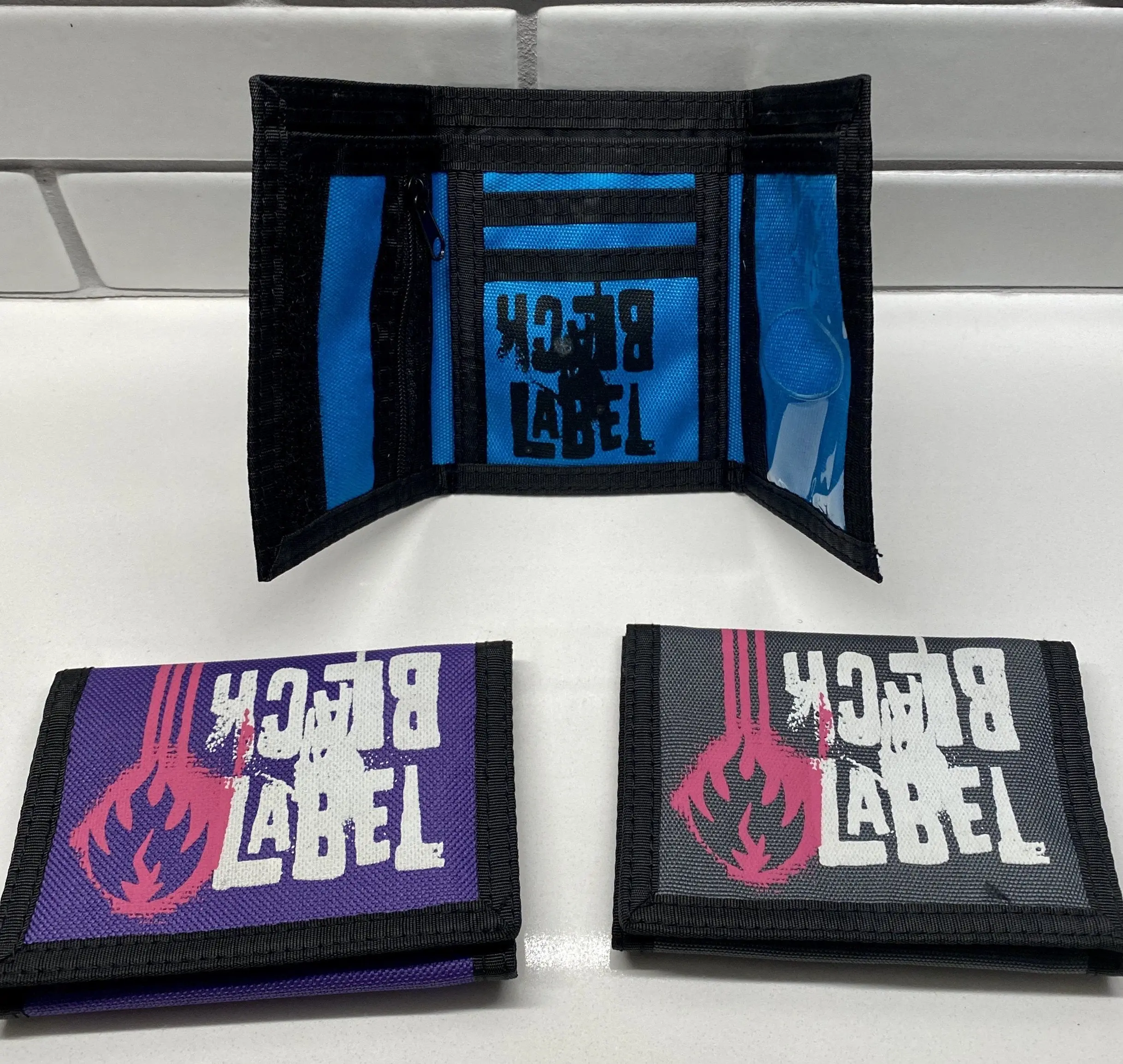 20+ years old. Vintage, New Old Stock (NOS). Black Label tri-fold wallet. Assorted colors - we will select one for you and it will be one of the ones in pictures.