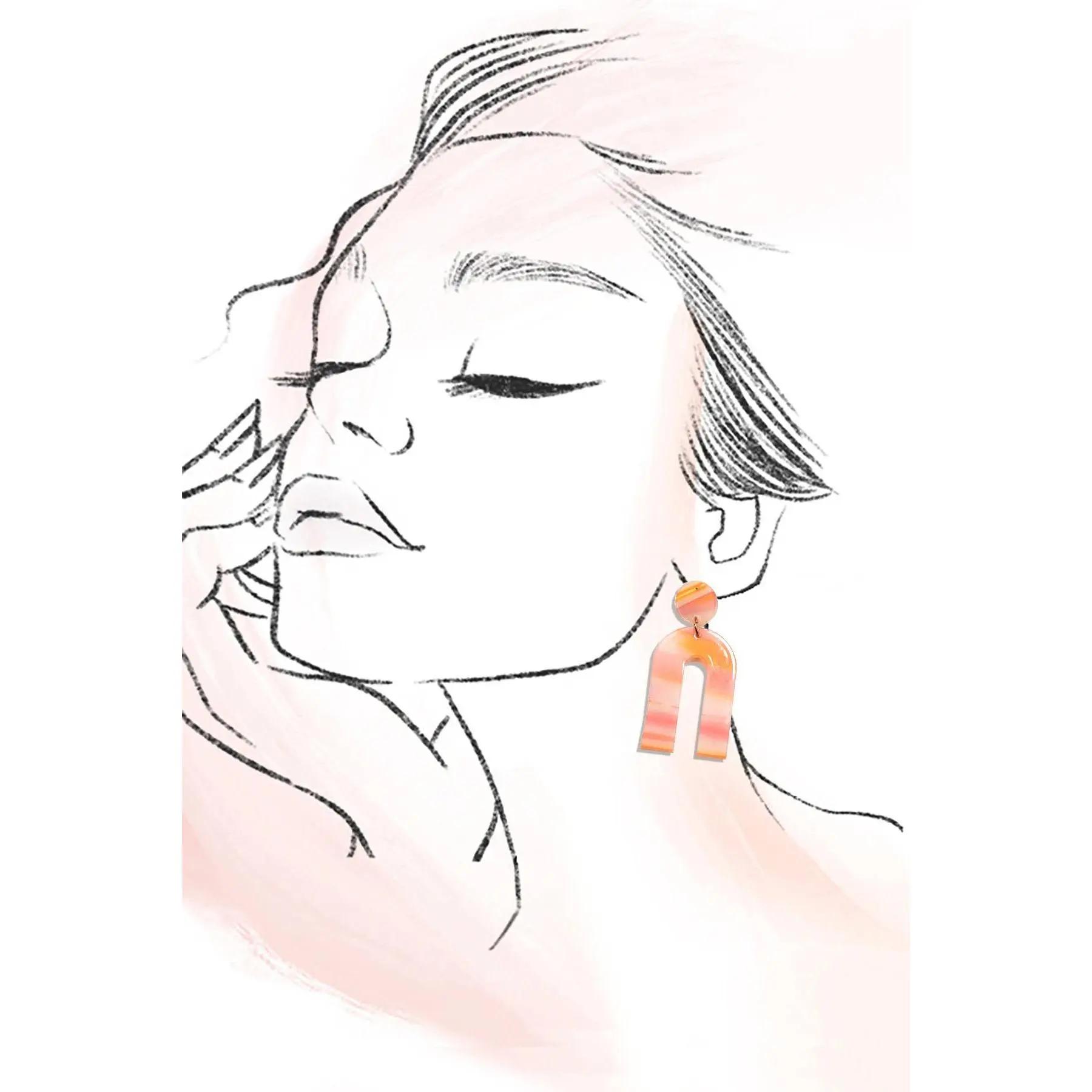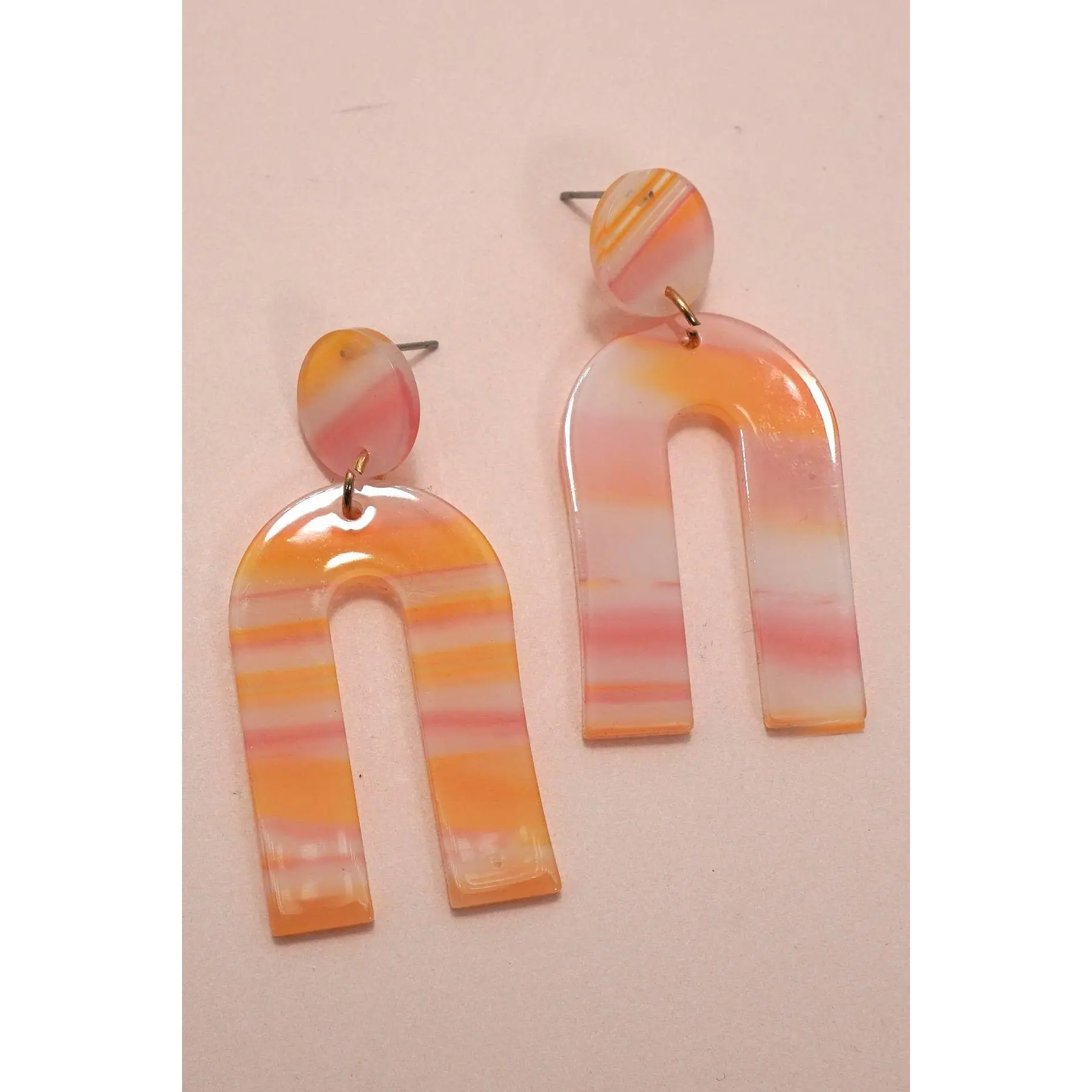 The latest top accessory trend in earrings are the polymer clay and acrylic earrings. This is a U/Rainbow shape with design top quality acrylic with multi color drop earring, which is light weight with smooth texture.