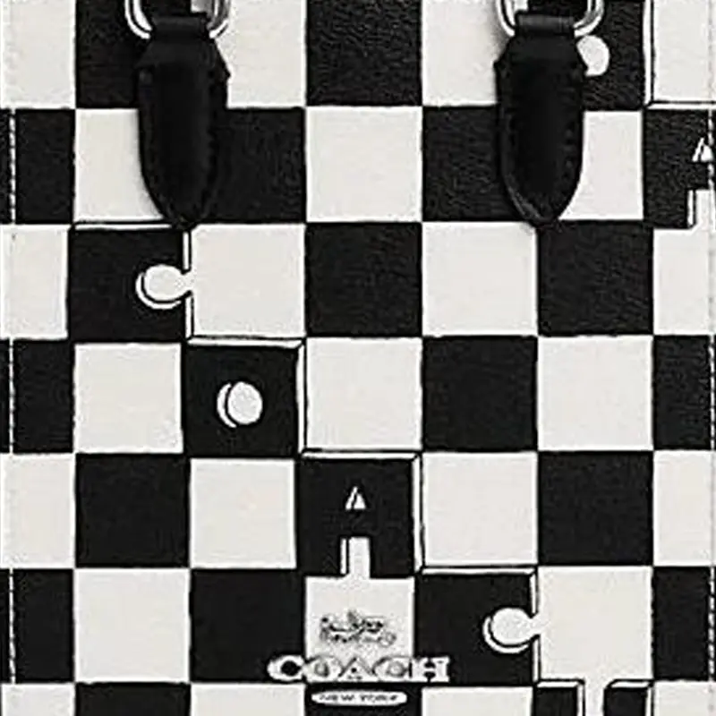 Design Concept: A compact yet functional reinterpretation of COACH’s classic tote silhouette. The bold, balanced checkered print merges vintage inspiration with contemporary minimalism, while silver-tone hardware adds refined contrast against the black and chalk-white colorway.