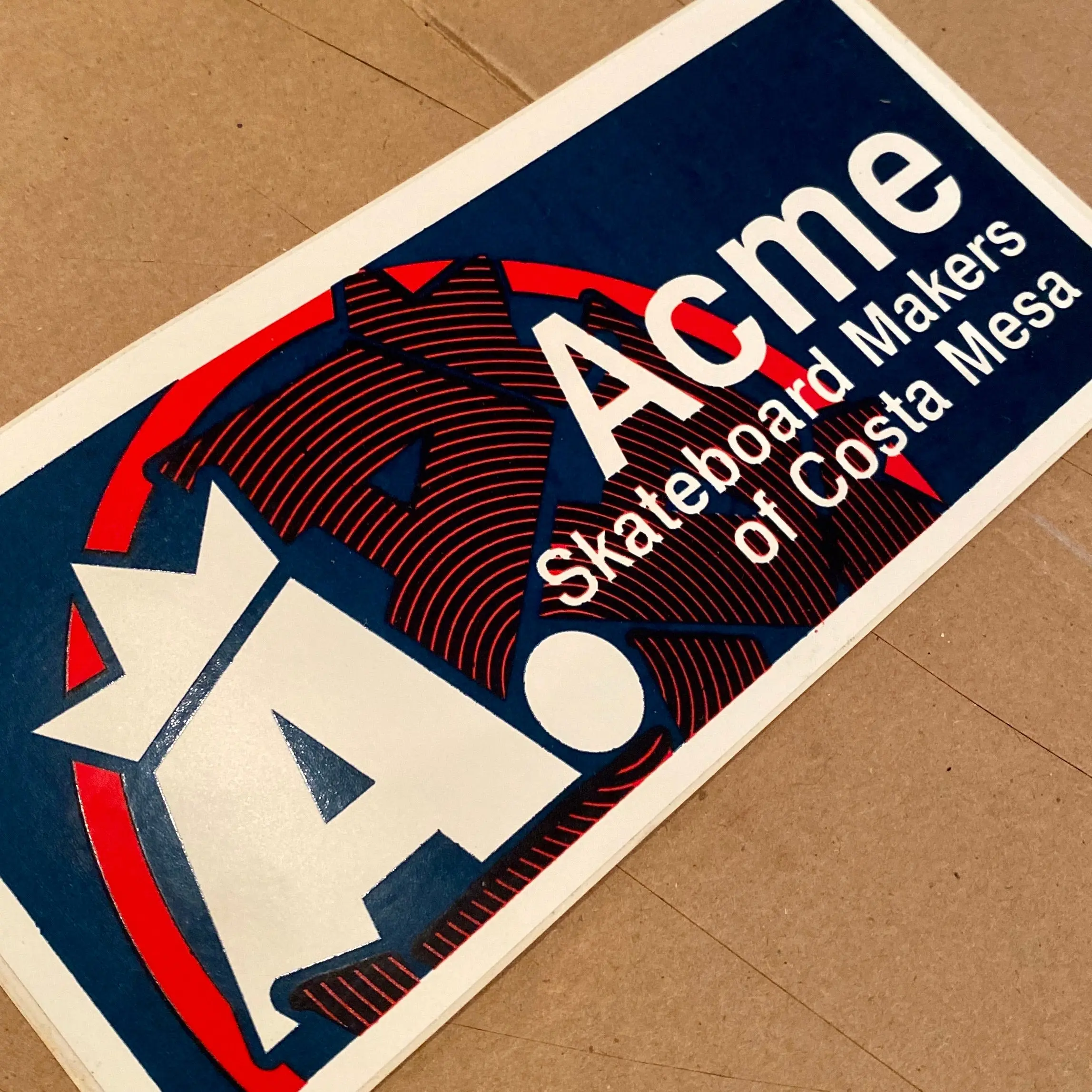 ACME 6” round diecut laminated glossy sticker. Vintage, NOS