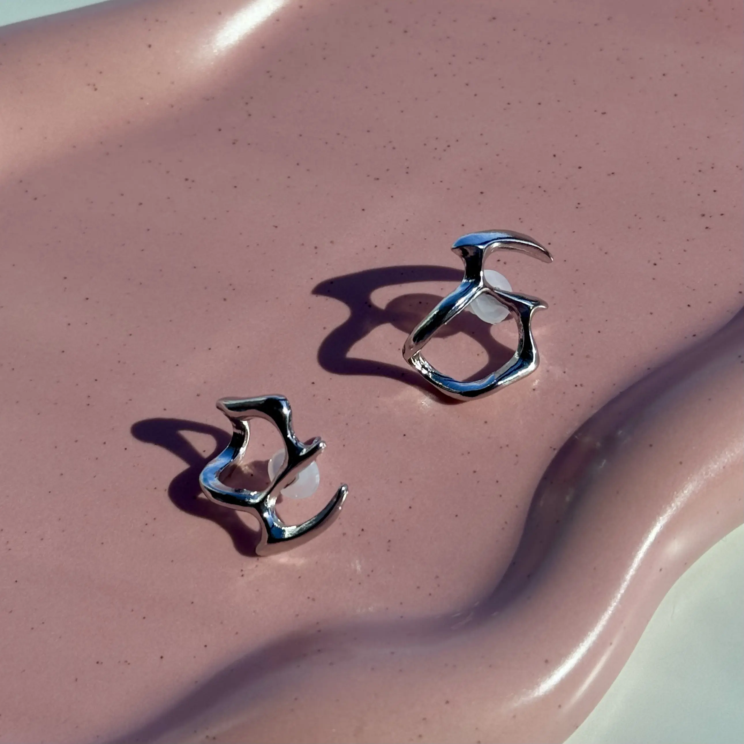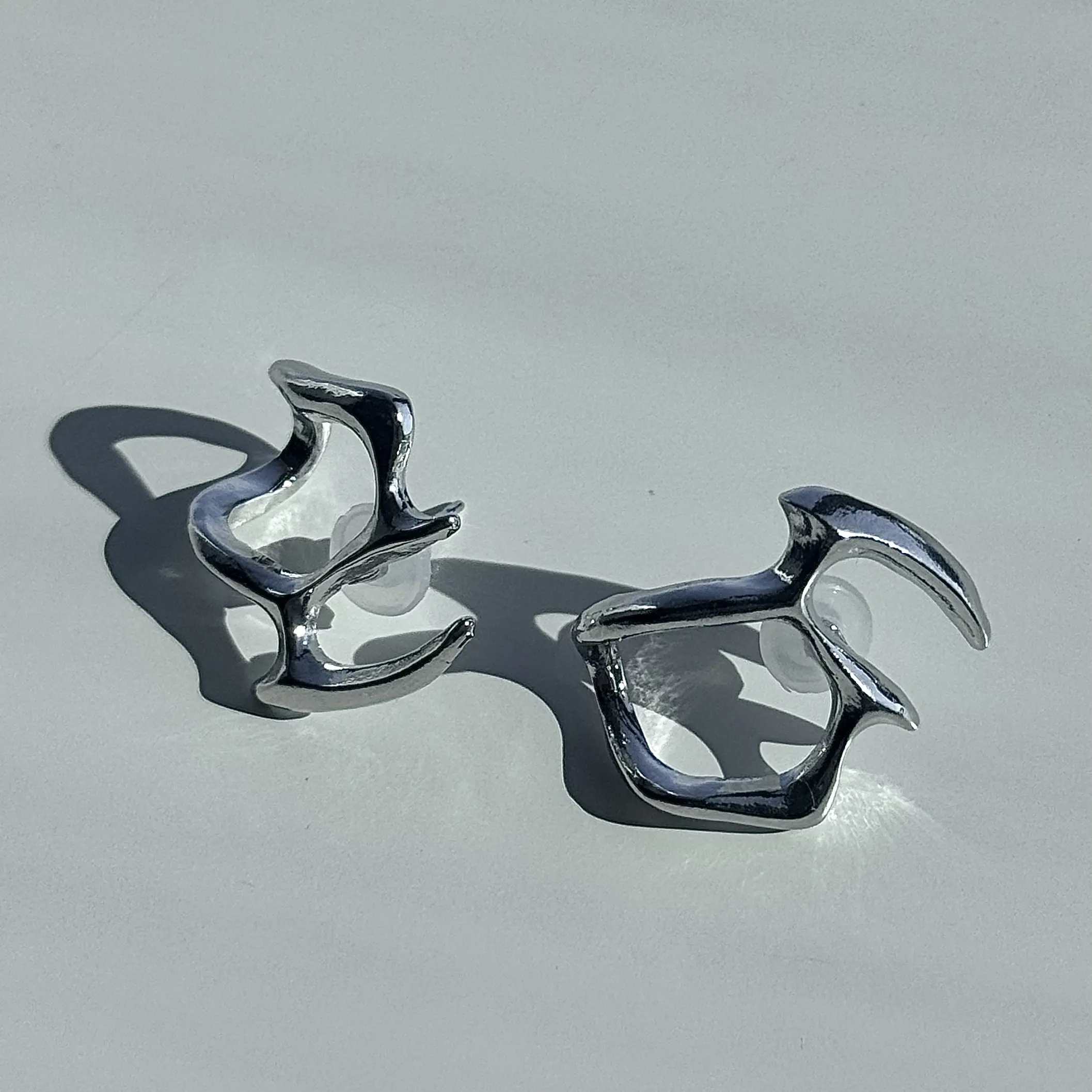 Silver-Tone Antler Branch Stud Earrings – Y2K Punk Structured Statement Jewelry, Multi Element Ear Studs for Women