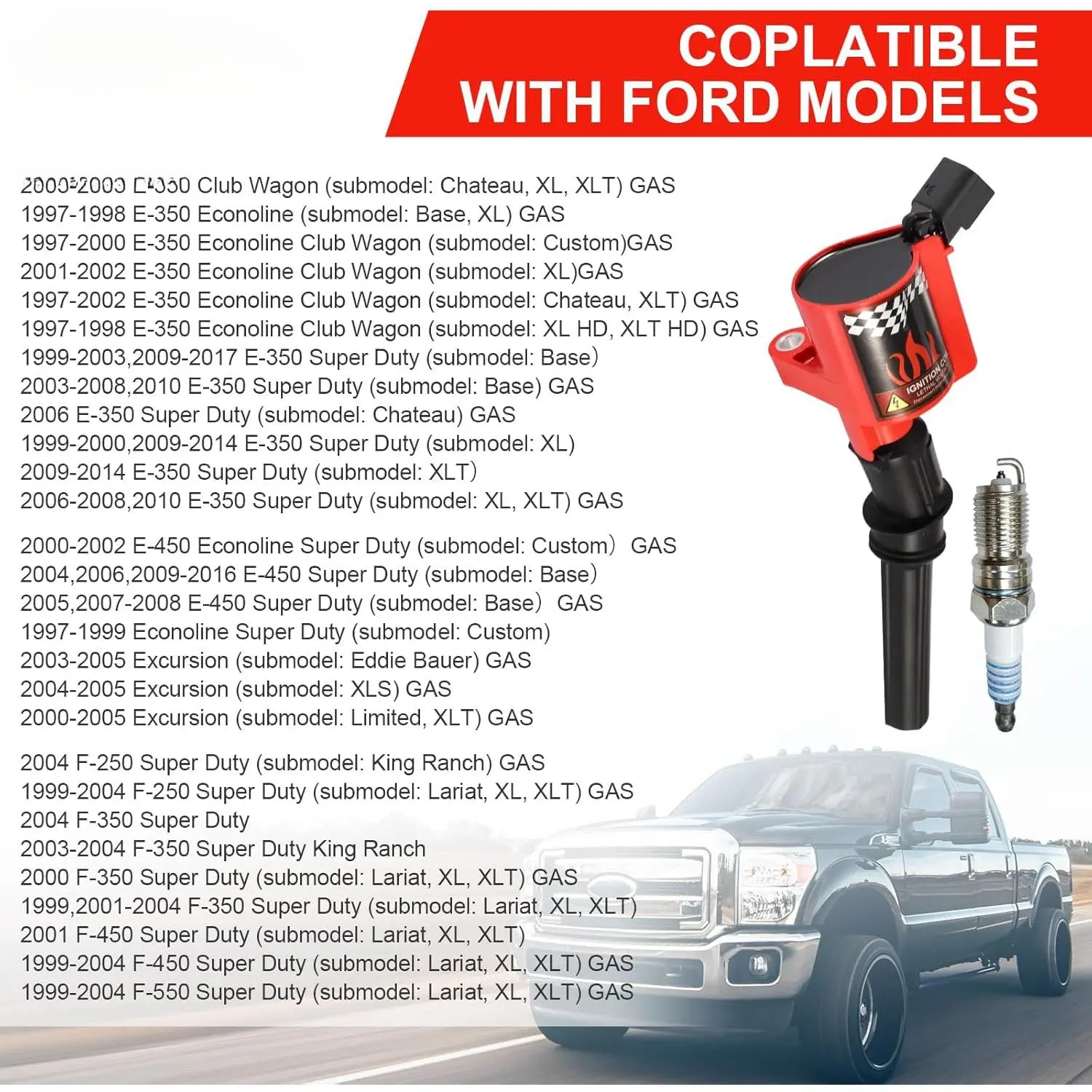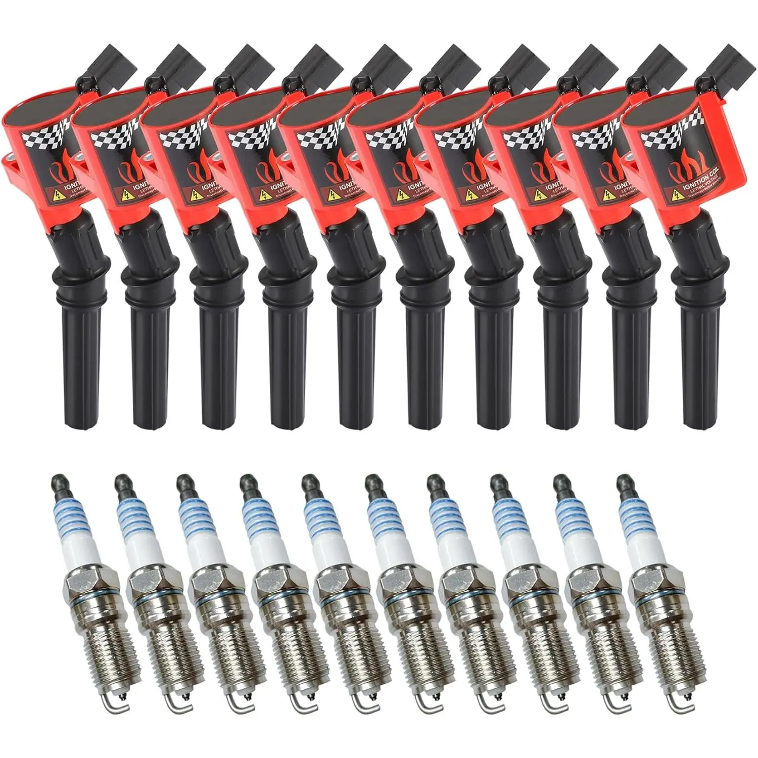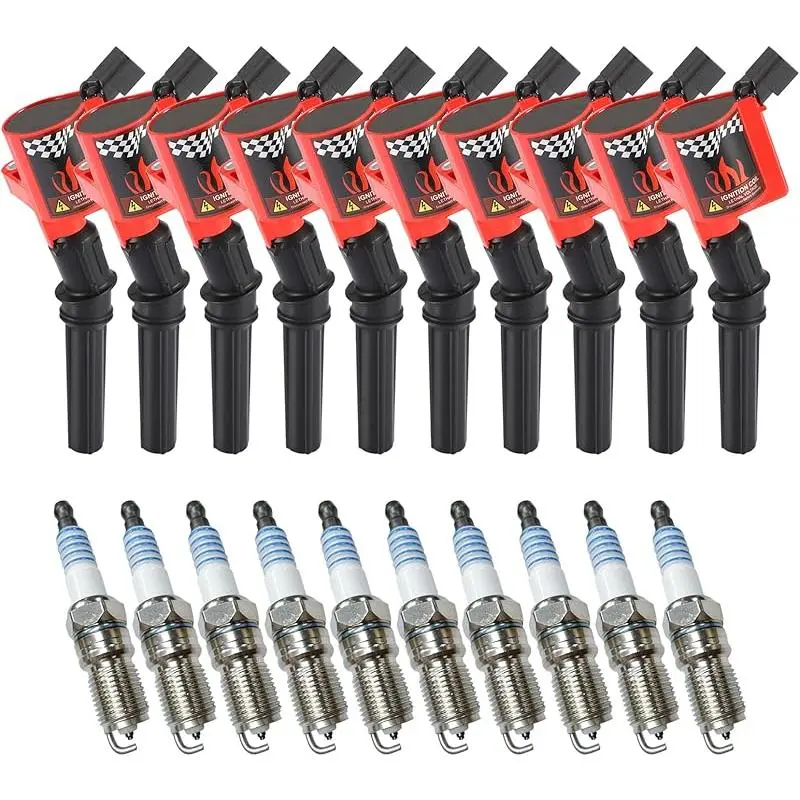 Package included: 10 pcs ignition coils + 10 spark plugs. DG508 ignition coil is compact in design, simple in structure, easy to install, and can be quickly integrated into existing engine systems Compatible to: Part Number # DG508, F523, 5C1412, E213, E262, E409, 52-1761, IC369, IC62, 1L2U12029AA, 1L2Z12029AA, 1L5Z12029AA, 3W7E12A366AA, 3W7Z12029AA, F7TU12029BA, F7TU12A366AB, F7TU12A366BA, F7TZ12029AB, F7TZ12029BA, F7TZ12029CA, F7TZ12029CC, 88921369, DG481, DG491, FD-493, FD-503, FD-507 Fit For: Most of Ford F150 F250 F350 F450 E150 E250 E350 E450 Crown Econoline Excursion Expedition Explorer Mustang Thunderbird / Lincoln Navigator Town / Mercury Cougar / Grand Marquis / Mountaineer, Engineered specifically for 1997 to 2008 6. 8L V10 modular engines Higher Performance: Ignition Coil Packs uses professional grade silicon magnetic steel core,precision winding and advanced winding technology; Engineered for original equipment and replacement applications, to ensure fast and easy installation with superior performance and reliability Durability: The ignition coil shell uses high-temperature epoxy resin with strong insulation, which has good thermal conductivity, permeability and high pressure resistance, which can effectively isolate the spark leakage and better avoid high temperature deformation of the coil. The core increases the insulating material carbon strip as a buffer,effectively reducing the spark generation Easy to install: Direct plug-in design, no need to move other parts of the original equipment when installing, the coil fits perfectly after installation, while having a more stable coil, which helps reduce idle instability and jitter