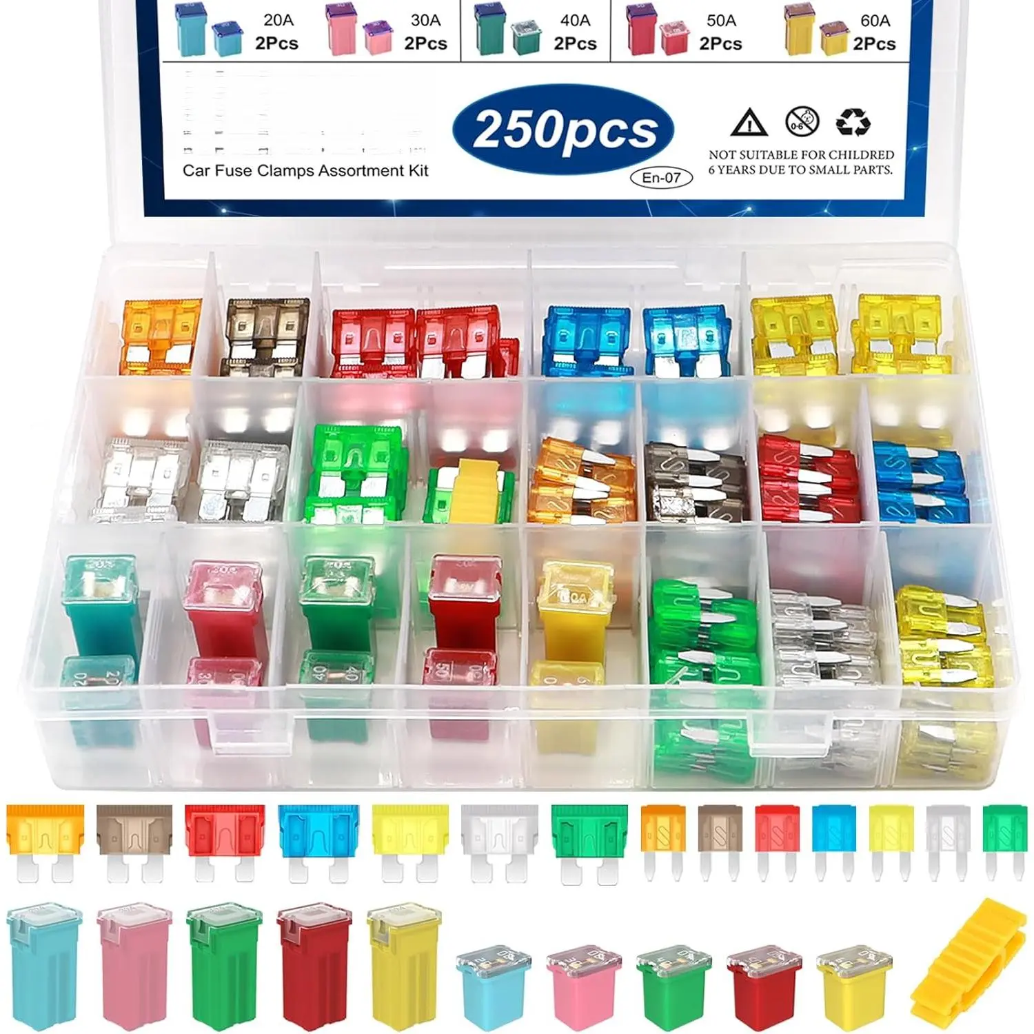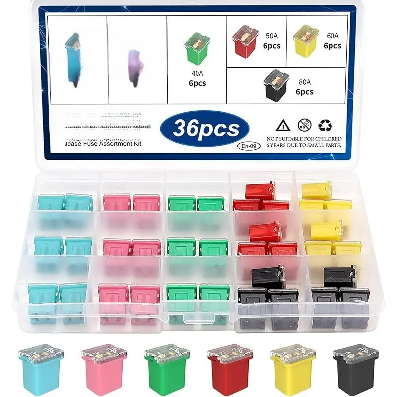 Product material: The blade-type fuse is made of high-quality zinc alloy, while the J-type box fuse is made of high-quality copper and plastic, offering good conductivity and corrosion resistanceEasy to identify: Each fuse can be easily recognized by its color-coded plastic casing and the rated current engraved on the topMulti-functional: Very suitable for replacing blown fuses at any time; strongly recommend checking the fuse size before purchasing car fusesWidely Applicable: Suitable for most electrical equipment and vehicles, such as cars, trucks, boats, RVs, trucks. Package includes: Car Fuse Combination Kit includes 4 types of fuses, standard blade fuses (5A, 7A) 5A, 10A, 15A, 20A, 25A, 30A), mini blade fuses (5A, 7A) 5A, 10A, 15A, 20A, 25A, 30A), thin car fuses (20A, 30A, 40A, 50A, 60A) and high-profile box fuses (20A, 30A, 40A, 50A, 60A), totaling 250 pieces + 1 piece fuse puller