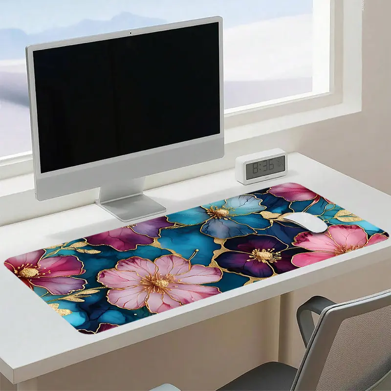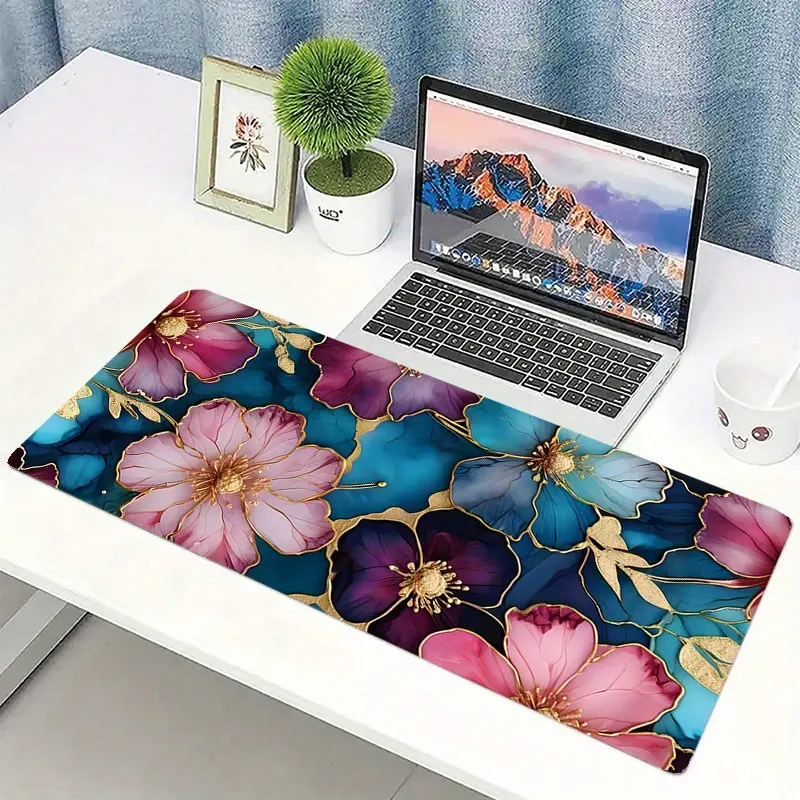 Extra Large Bohemian Style Floral Table Runner | Aesthetic Mouse Pad with Non-Slip Rubber Base and Stitched Edges | Vibrant HD Printed Floral Design | Ideal for Home Office and Gaming | The Perfect Gift for Women