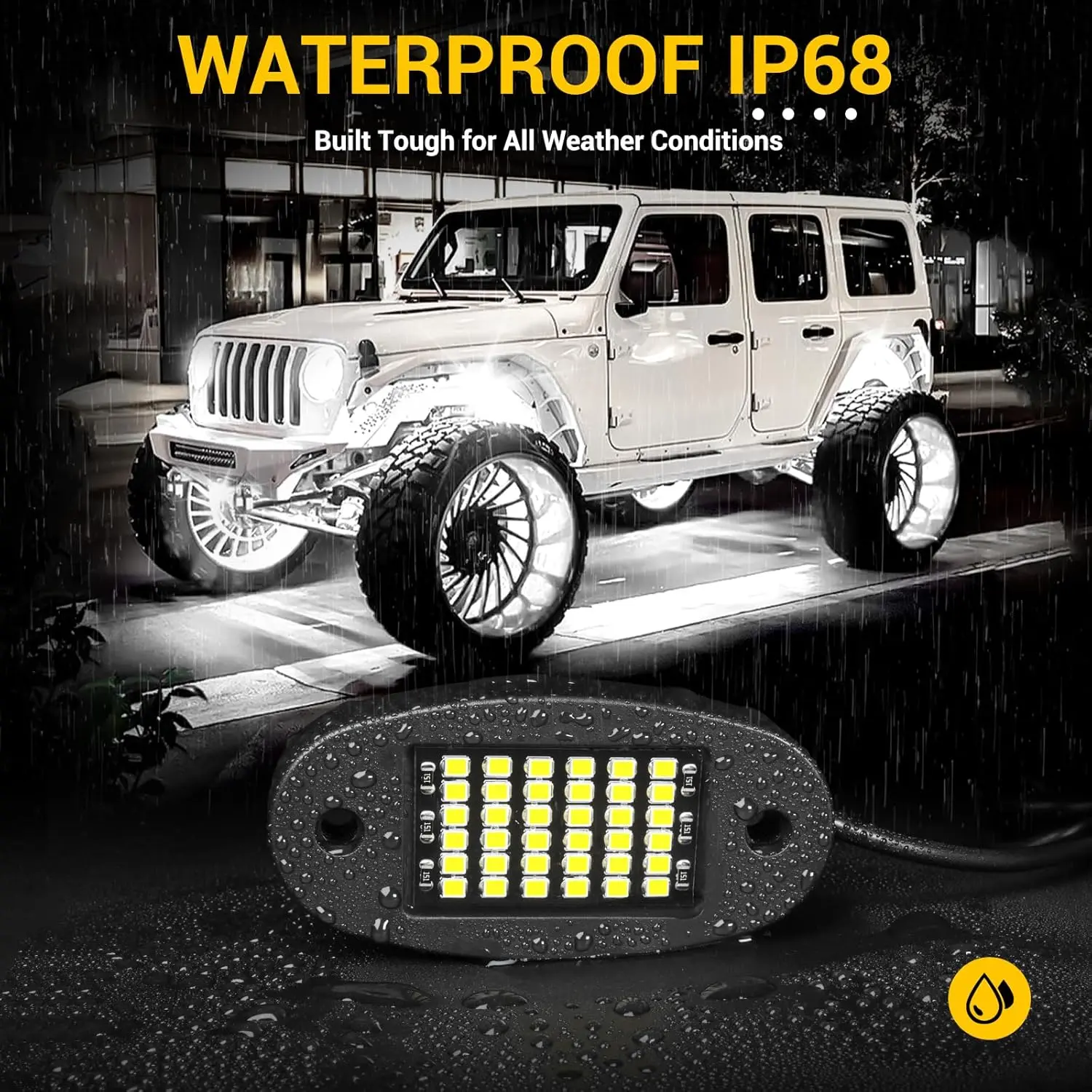 20 Pods White Rock Light Kit with Wired Switch - 6500K Pure White LED Underglow, IP68 Waterproof, Super Bright 36 LEDs for Trailer Off Road SUV UTV ATV RZR