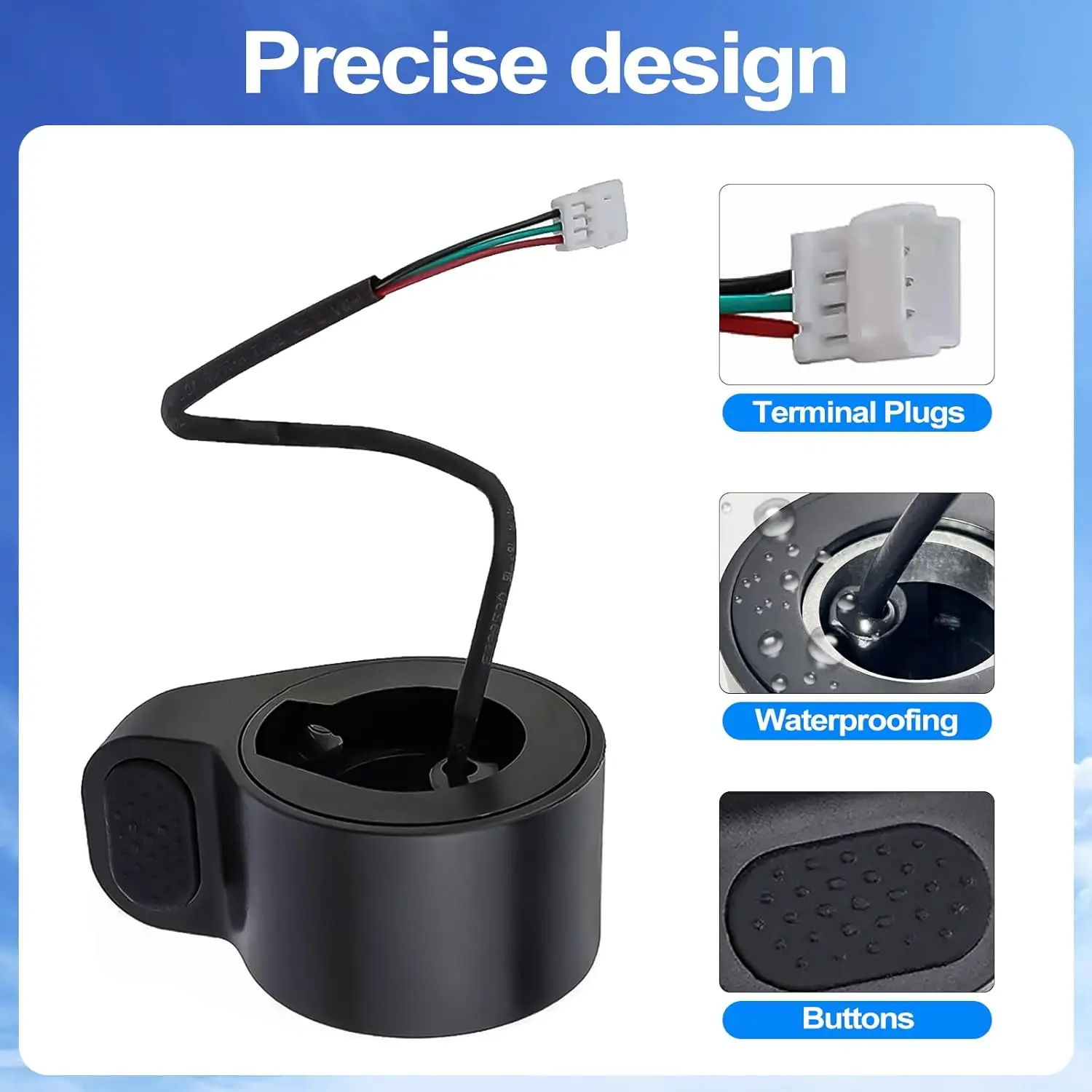 Finger Throttle Compatibility: Compatible with M365/pro 1s Electric Scooter 1:1 Ratio Development Design: The Original Interface Can Be Easily Connected to The Scooter, 100% Matching Can Directly Replace The Old or Broken Car. Solve The Problem That The Accelerator Is Slow and Insensitive after Long-term Use, and Cannot Work after Being Pressed Premium Material: Made of High Quality Material Abs+pc, Sturdy and Durable. Not Easy to Damage, Qualified Quality. High-Quality: Throttle Accelerator with Highly and Wear Resistance for Maximum Durability.precise Design Can Easily Control The Speed of Your Electric Scooter Through The Left Hand Thumb Throttle. Provide Convenient Installation Tools: We Have Included Installation Wrenches in The Scooter Accelerator Accessories; No Need to Buy Installation Tools for Quick Installation! Package List: 1 * throttle gas pedal; 1 * installation wrench "L" Well design: Throttle accelerator. help people control the speed of the electric scooter easily and precisely.