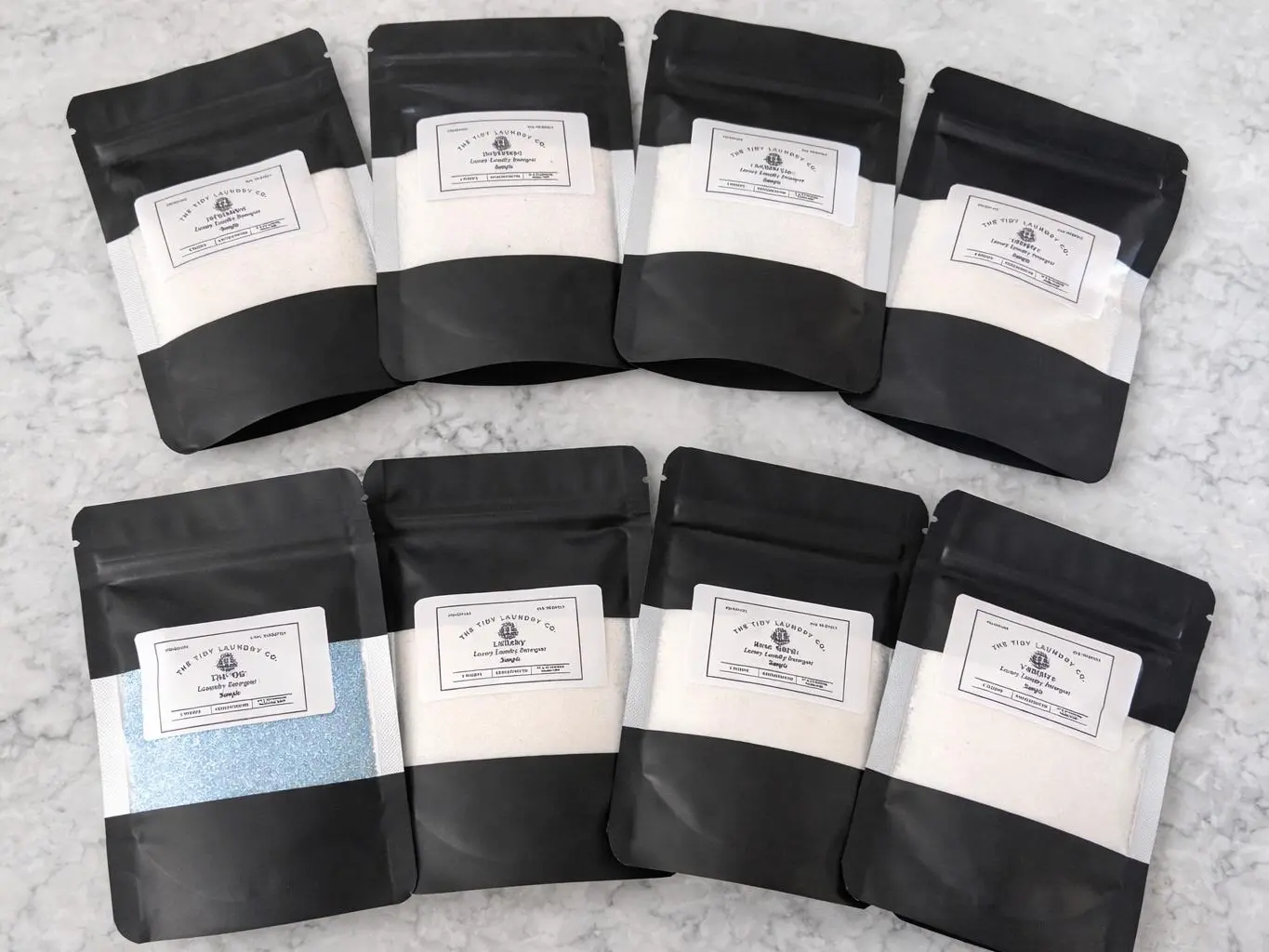 We now offer a sample laundry bundle for those that want to try out our scents to see which ones are their favorite. Each pouch contains 2 scoops of our Premium Luxury Detergent along with The "OG". Our Sampler Pack includes the following: