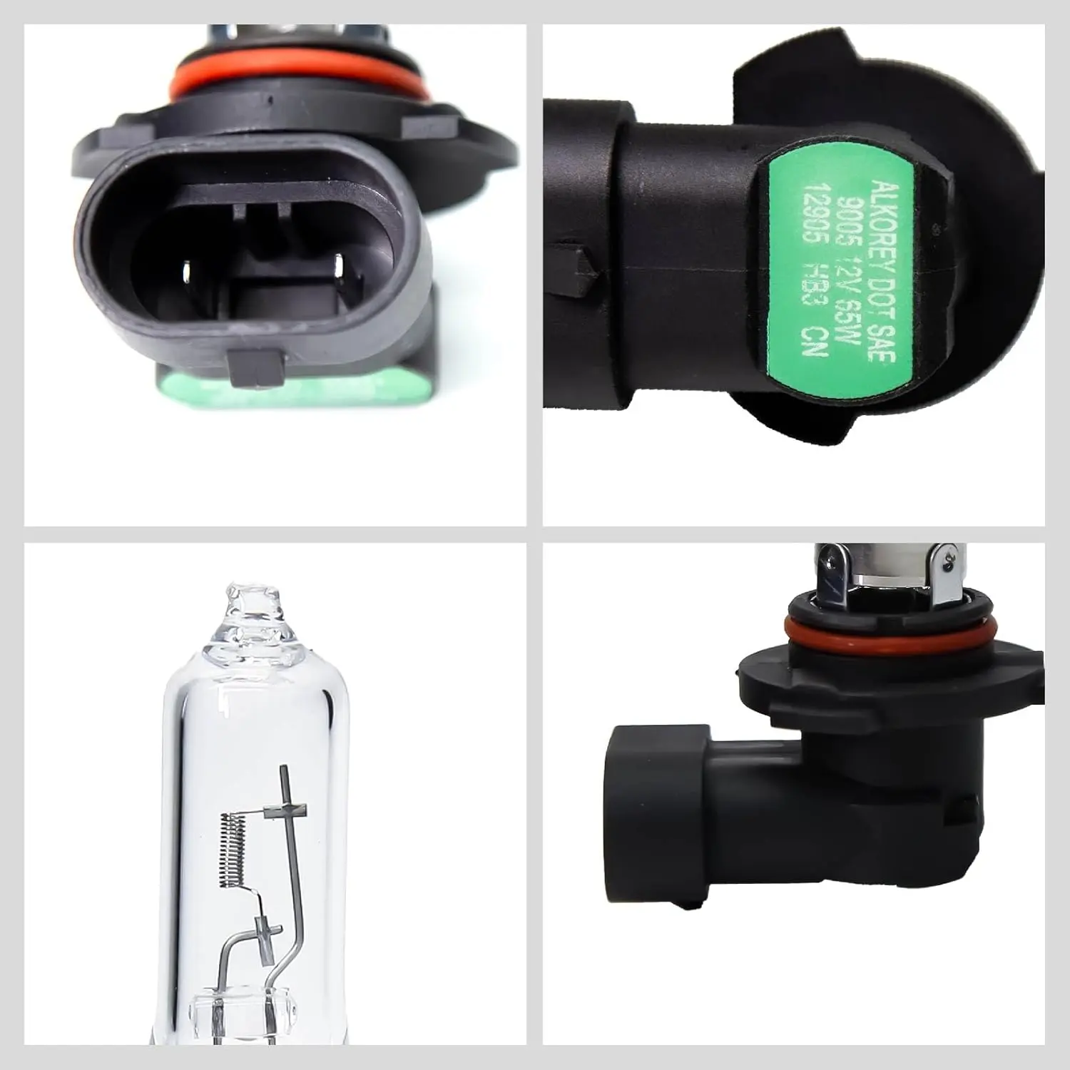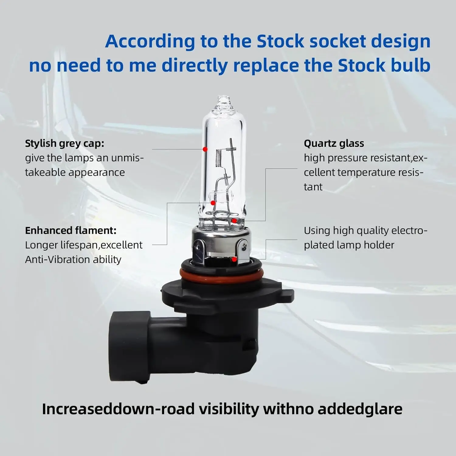 Product Specifications: You will receive 9005 bulbs, which can be used as low beam/high beam. Our halogen bulbs are universal and can be applied to most cars. It’s standard bulb, with 3300K warm white light. High Quality: This bulb is made of quartz glass, which is more stable and not easy to break. Compared with other used bulbs, It has better heat dissipation performance. More than 30 years of production experience. High quality bulbs, trustworthy. Applications: Halogen bulbs are widely used as vehicles, cars, vans, caravans, RV campers, motorcycles, motorbikes, scooters, ATVs, UTVs, snowmobiles, trucks, off-road trucks, trailers, SUVs, pickups and other low voltage 12V automotive Safe Driving: This bulb will not produce excessive glare or cause interference to oncoming drivers. It has wider illumination range and greater light intensity and can effectively expand the field of view in front of the vehicle, greatly improving driving safety and comfort. Avoid risks on the road ahead in advance and improve driving safety. Easy to Use: Our product is easy to install, insert and replace. No need other external driver, and it can be perfectly installed into the original housing and socket of the car. When you install the bulb, please do not touch the glass tube with your hands. Please pay attention to wear the gloves during the installation.Halogen bulbs for car bulbs are important replacement parts for cars. Please be sure to strictly match the parameters of the original car bulbs.
