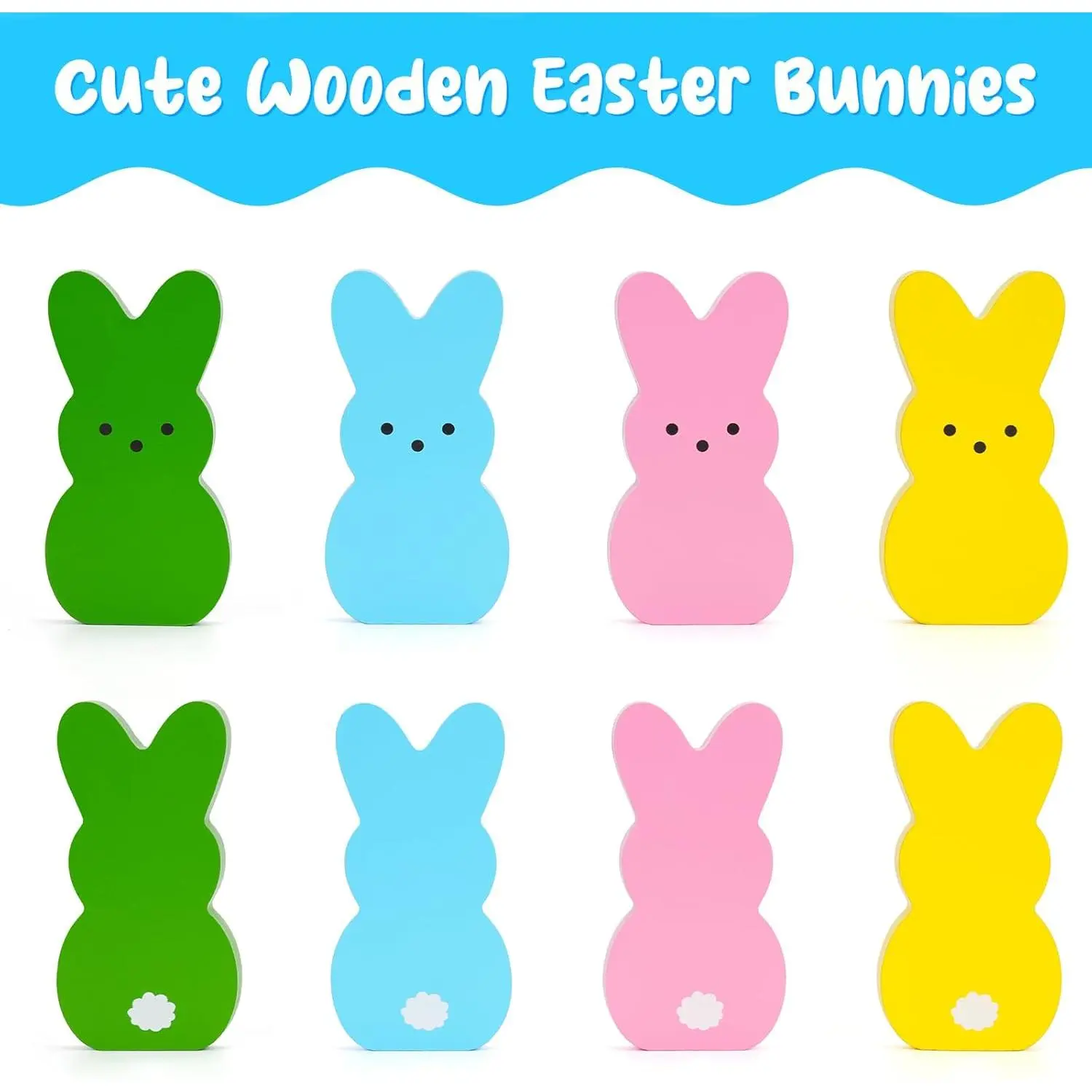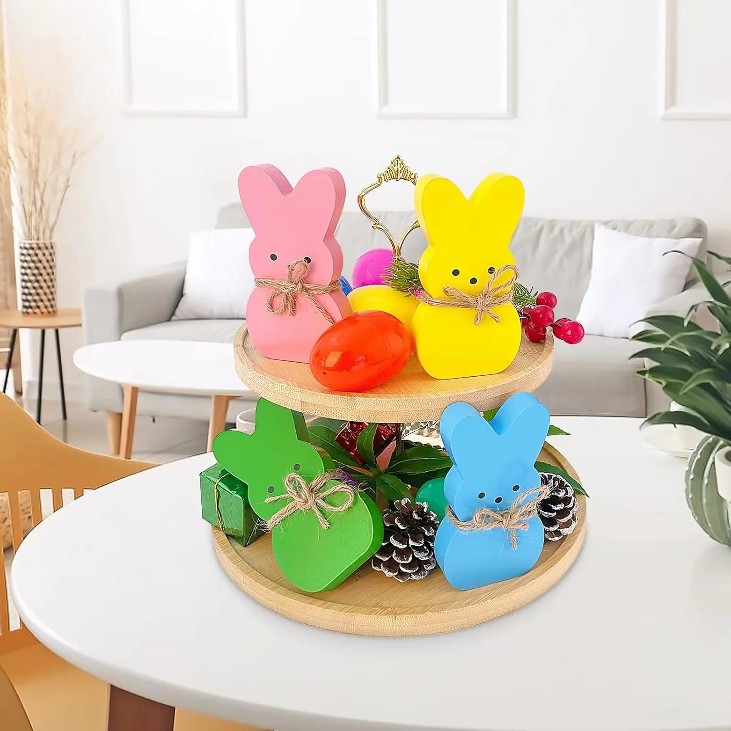 Easter Décor, 4 Pcs Bunny Table Decorations Wooden Spring Signs for Home, Wood Rabbit Tiered Tray/Mantal Décor for Farmhouse or Office Party Supplies