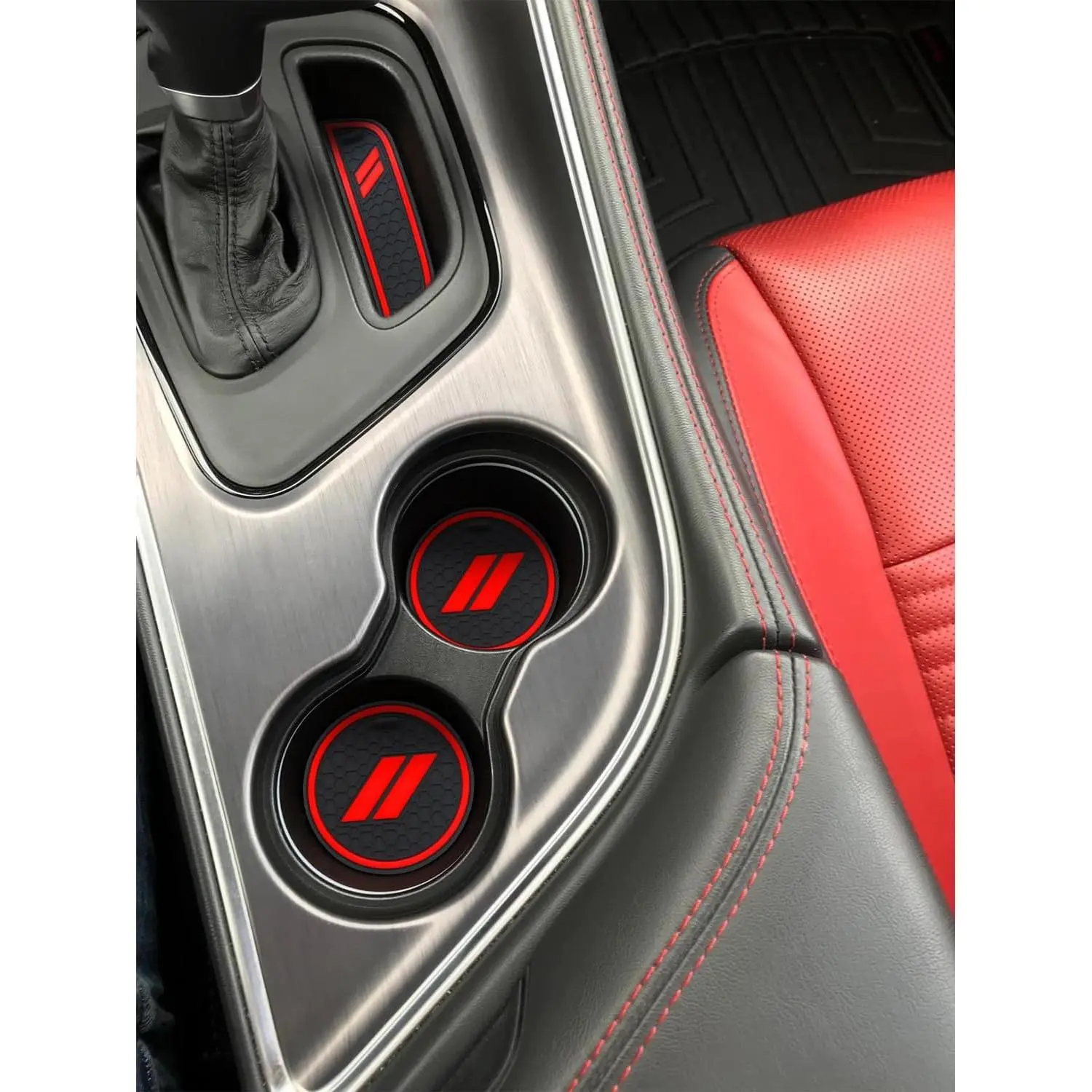 FIT FOR: Custom fit for Dodge Challenger Accessories 2015 2016 2017 2018 2019 2020 2021 2022 2023 2024 with trims of the Challenger including SXT, SXT PLUS, R/T, GT AWD, R/T PLUS, RT SHAKER, T/A, R/T SCAT PACK, R/T PLUS SHAKER, TA PLUS EASY TO USE:Just Put It In. No need to cut. If there are stains and residual dirt after use, the liner mat can be rinsed with clean water and dried before use PREMIUM MATERIAL: Cup holder coaster made of top-quality and long-lasting rubber materials. All-Weather Protection FUNCTION: Adds a Nice look to the interior. Anti-slip bottom and prevent items from sliding. Noise Reducing, 11 pcs/set IDEAL GIFT: Great gift ideas for men or women who enjoy the feeling of a clean car and love a detailed custom look