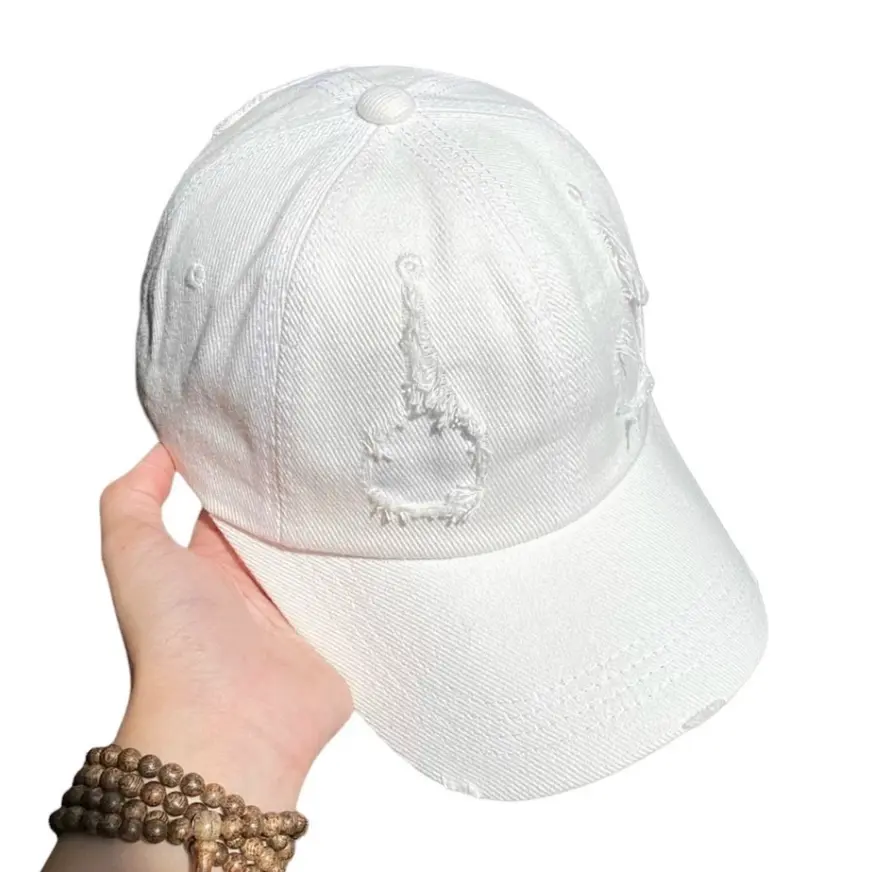 High-Quality Ripped Denim Baseball Cap / Export Style White Denim Cap