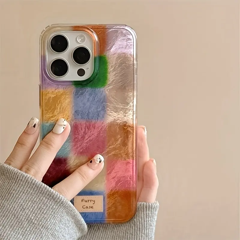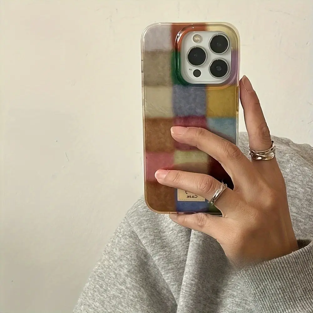 Phone Case - Retro Autumn And Winter Colored Square Foil Pattern Phone Case Suitable for Apple Iphone 11/12/13/14/15/16, Iphone 16/15/14/13/12/11 Pro Max Xs/Xr/X/7/8/Plus HL Large Hole Vortex - Mixed - Colored Square
