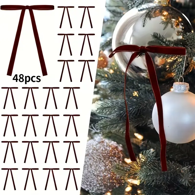Available in 24 or 48-piece packs, this set offers great value for both personal and commercial use. Whether you're decorating your home for the holidays, preparing for a Christmas party, or looking for bulk decor supplies for events, these velvet bows meet all your needs. Each bow is carefully crafted with attention to detail, ensuring consistent quality and a polished look that impresses.