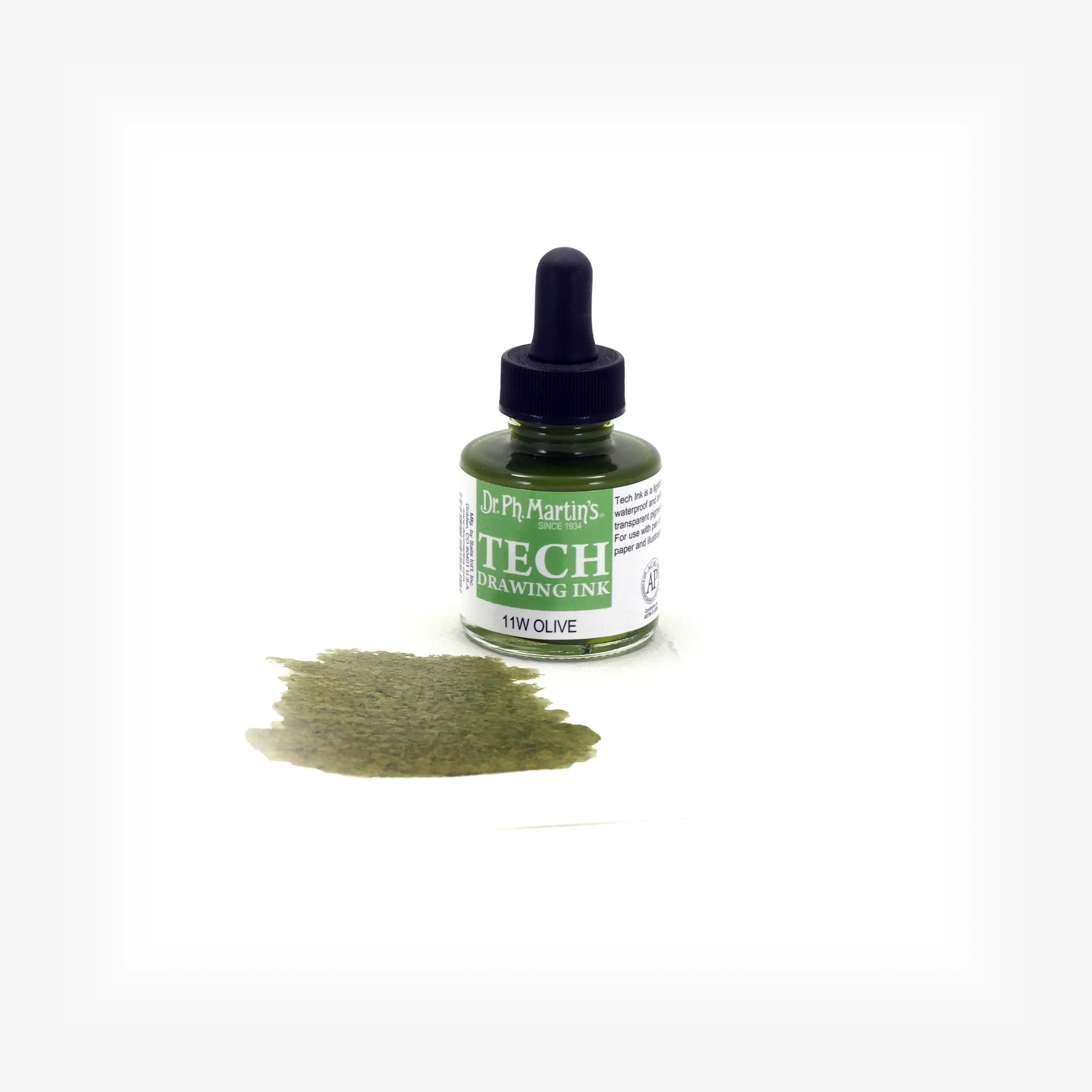 Dr. Ph. Martin's TECH Drawing Ink (11W) Ink Bottle, 1.0 US fl oz, Olive Green, 1 Bottle