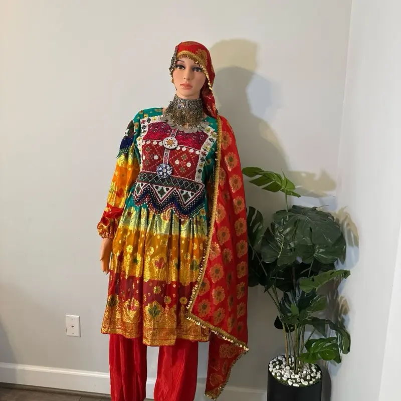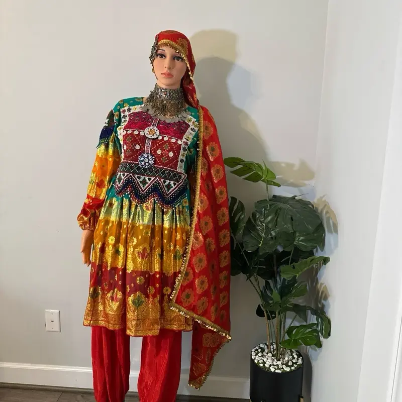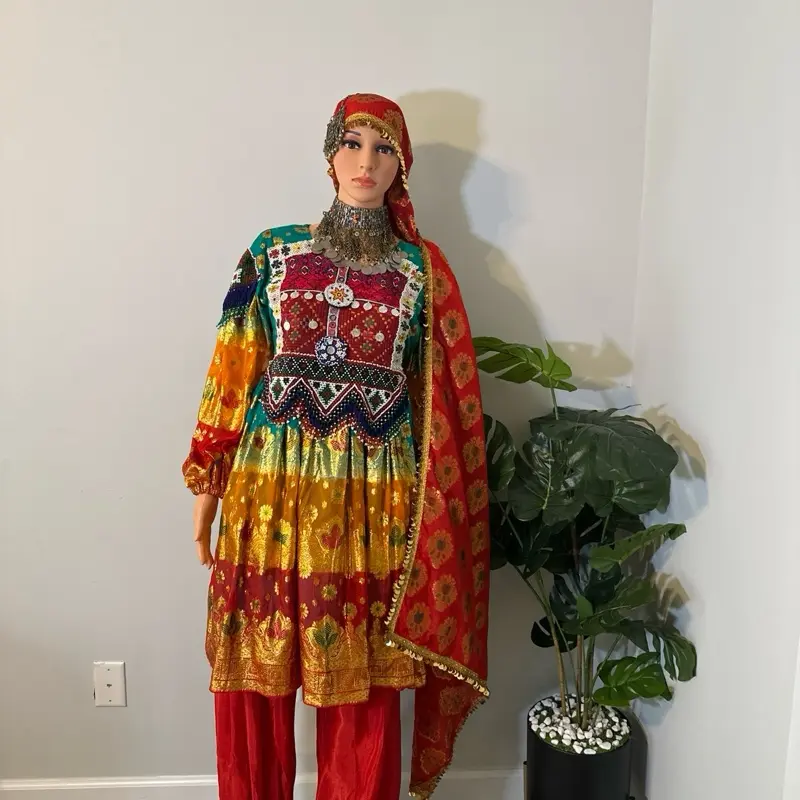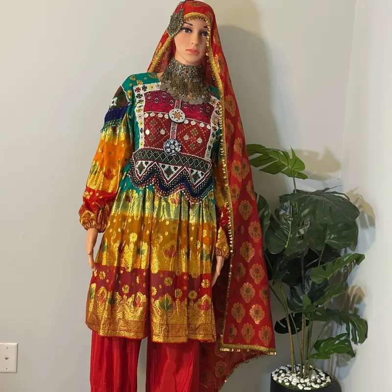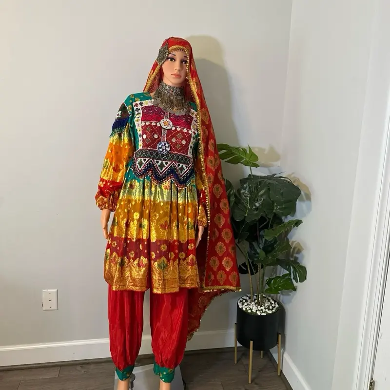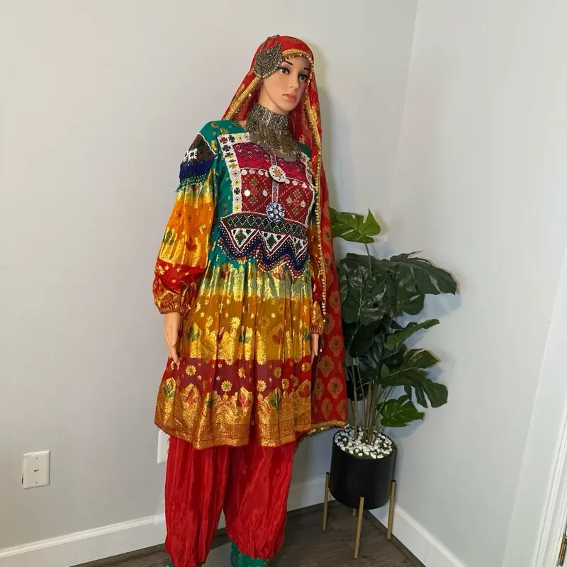 A striking fusion of vibrant colors, intricate handcrafted details, and cultural artistry, this outfit stands out as a true statement piece. Its rich embroidery and bold design capture tradition while offering a unique, eye-catching look that ensures you stand out at any special occasion.