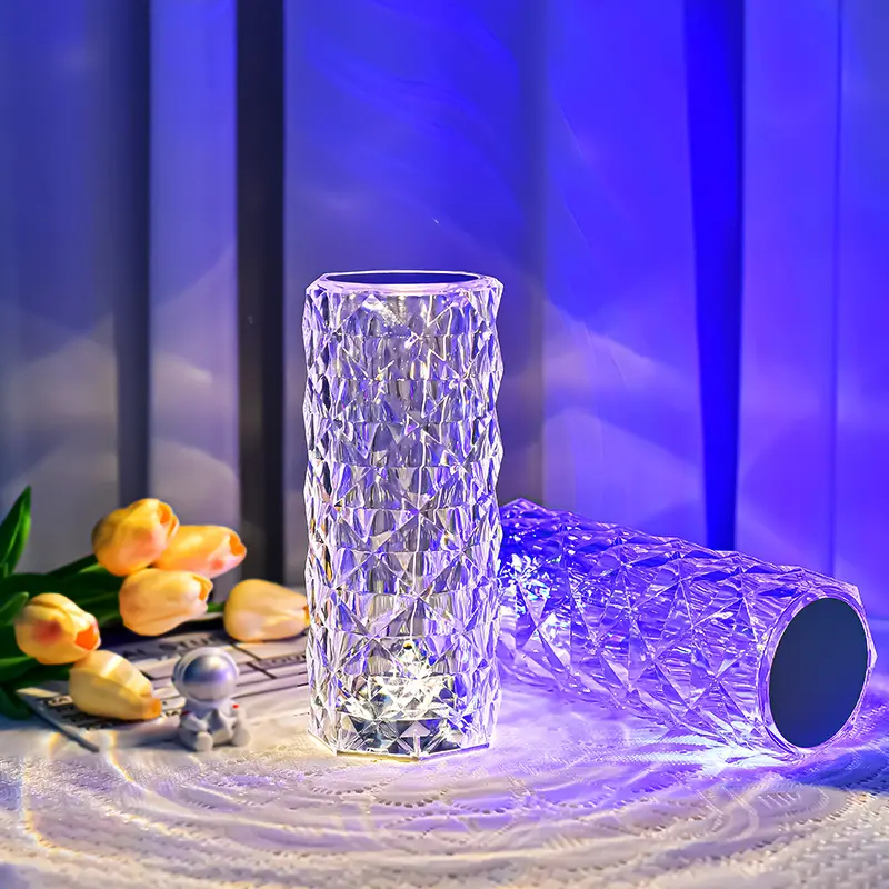 ·[Crystal Diamond Rose Table Lamp]Made of PC + transparent crystal material, with 3D technology, the bottom is interlaced with light and shadow, like a blooming rose, and the light glows like a diamond.This crystal table lamp is simple, modern, creative and romantic.