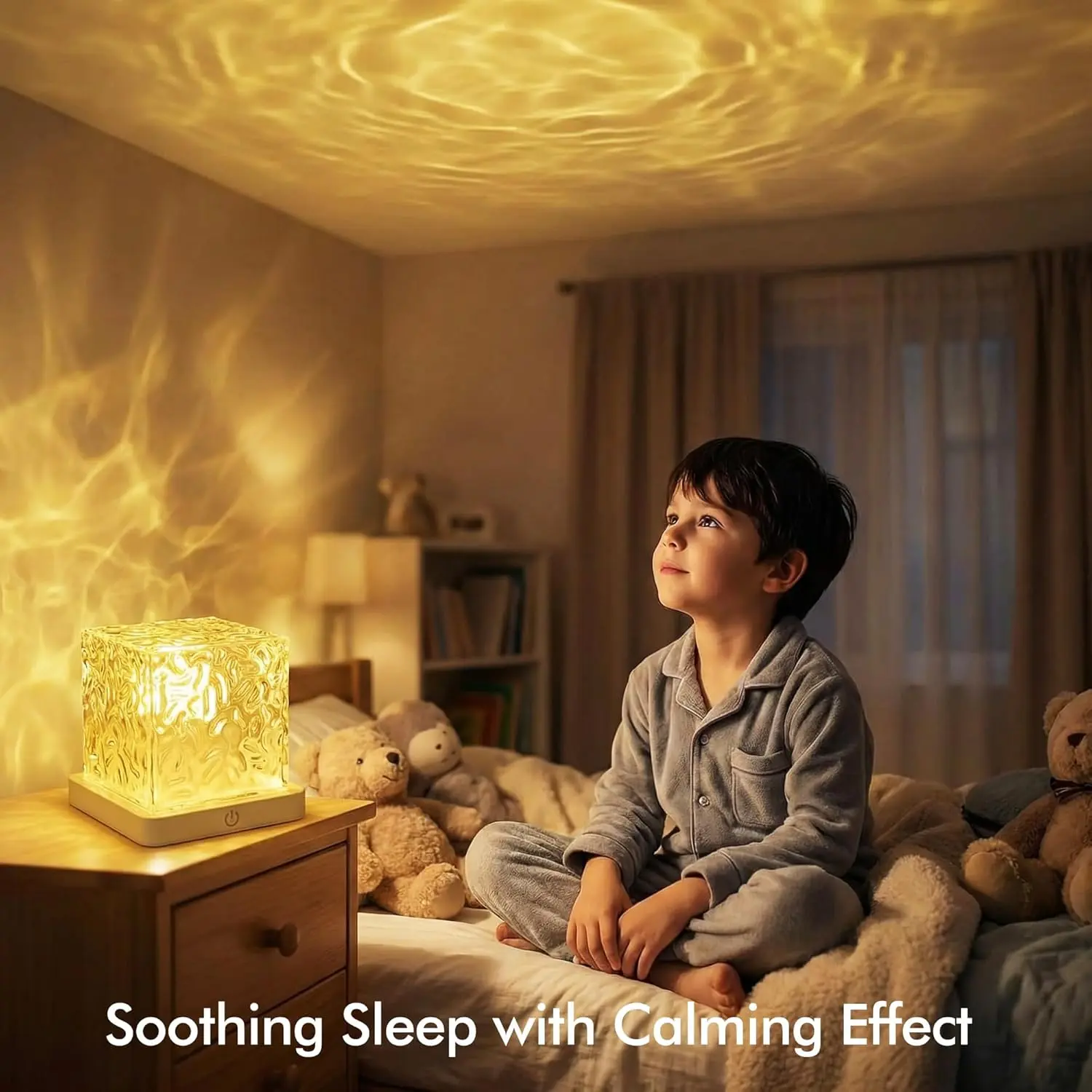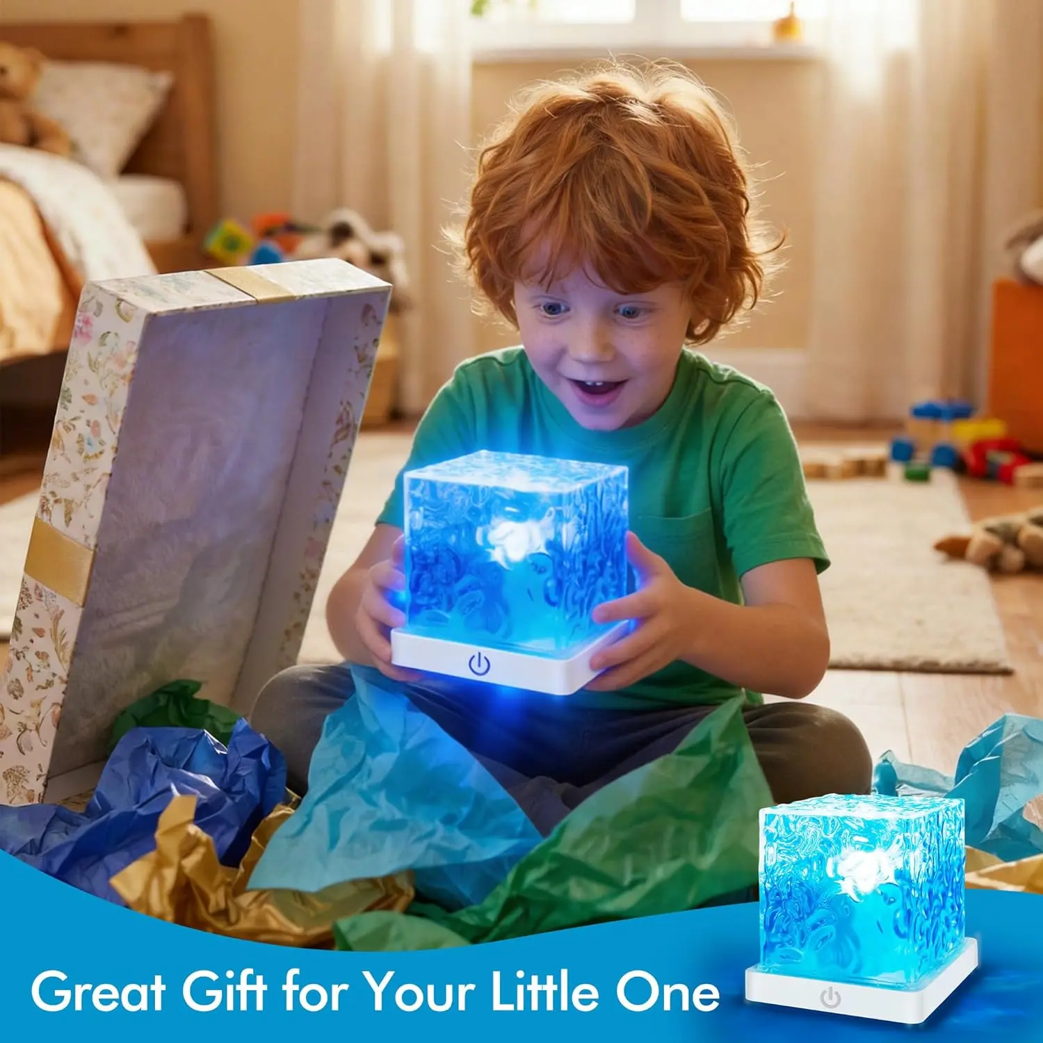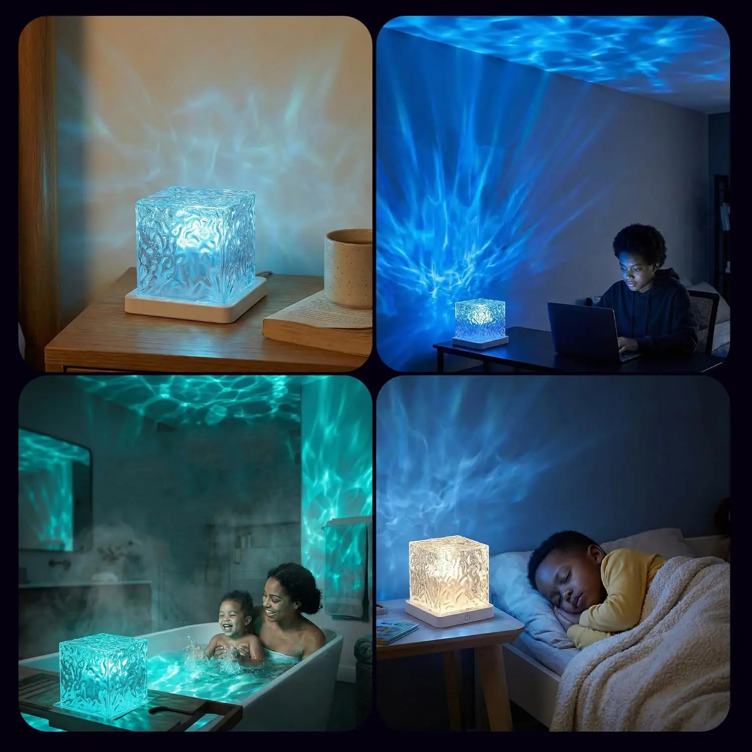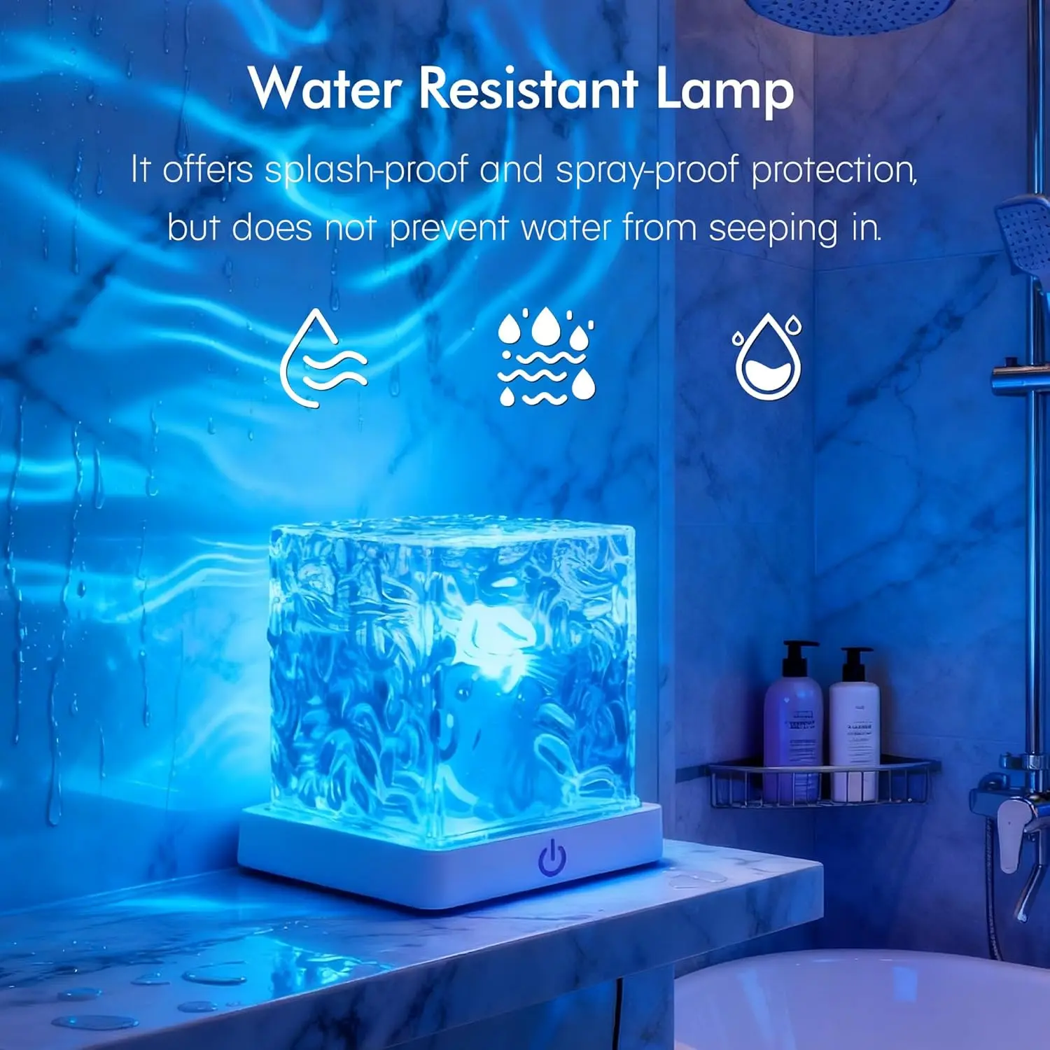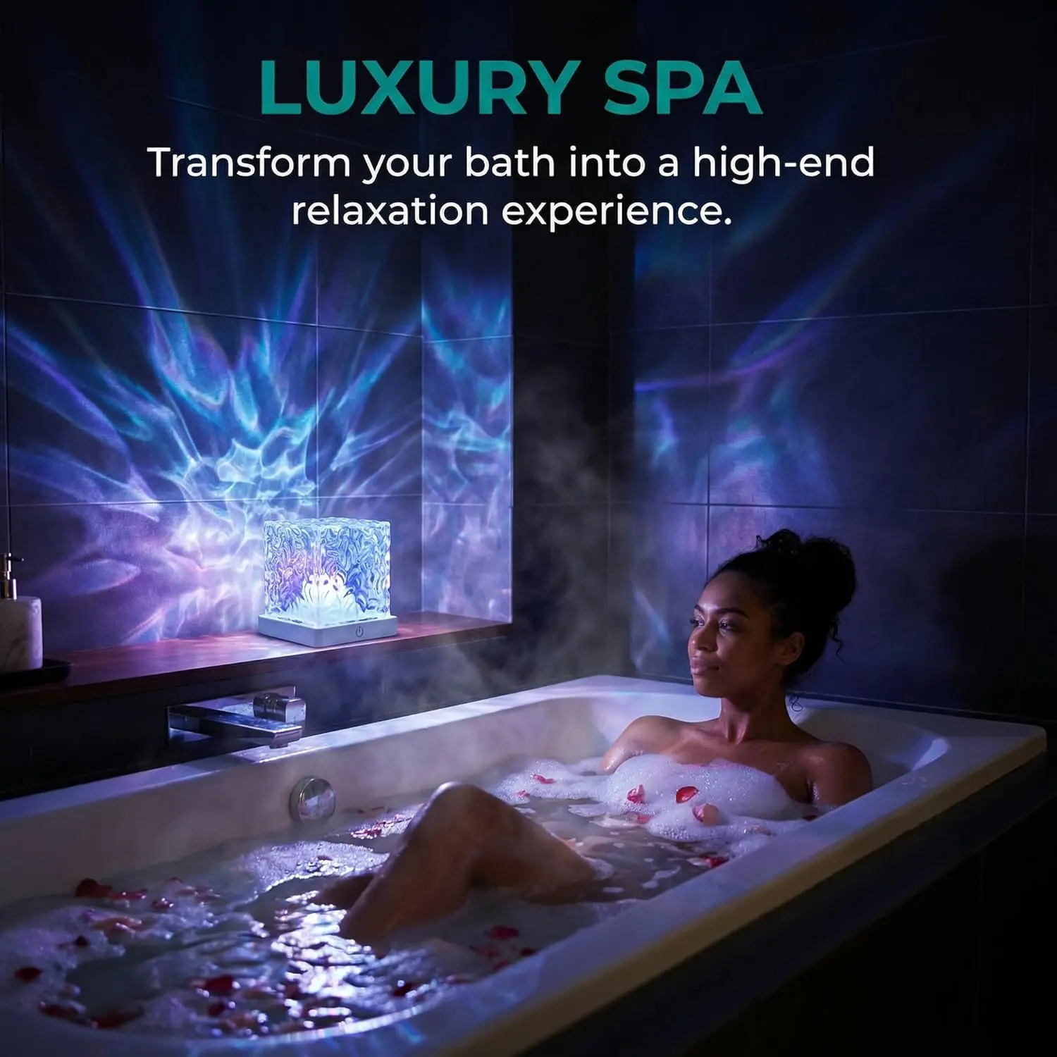 Waterproof Bath Light for Inside Bathroom, Rechargeable Cube Shape Kids Shower Lamp, RGBW 13 Color Changing Bathtub Lamp with Remote Ocean Wave Projector Mood Night Lighting