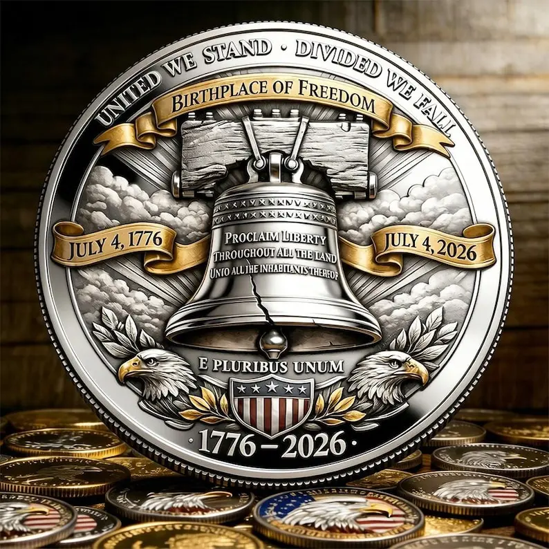 5. 1776–2026 USA 250 Years Coin Set – Liberty Bell Patriotic Challenge Coins Gift for Patriots