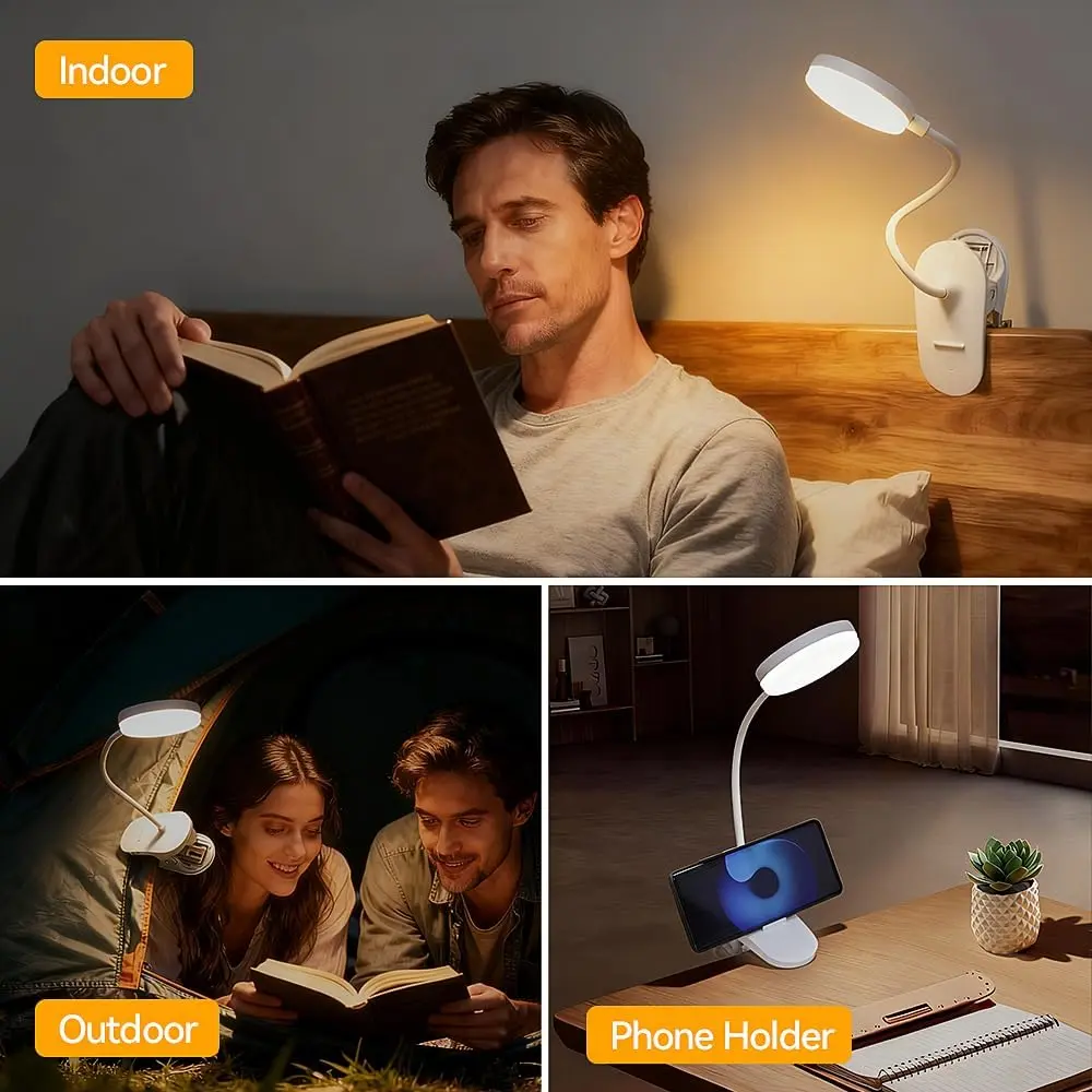 🛏️Bed: Clip on headboard for reading in bed, soft light won't disturb your partner.