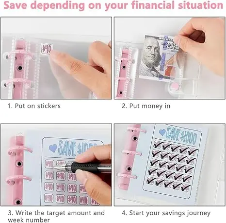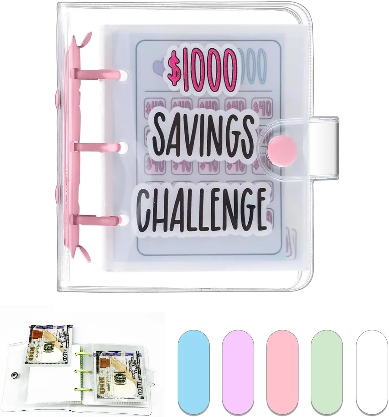 Mini Money Saving Binder, $1000 Savings Challenge Book with 25 Envelopes, Portable Budget Tool
