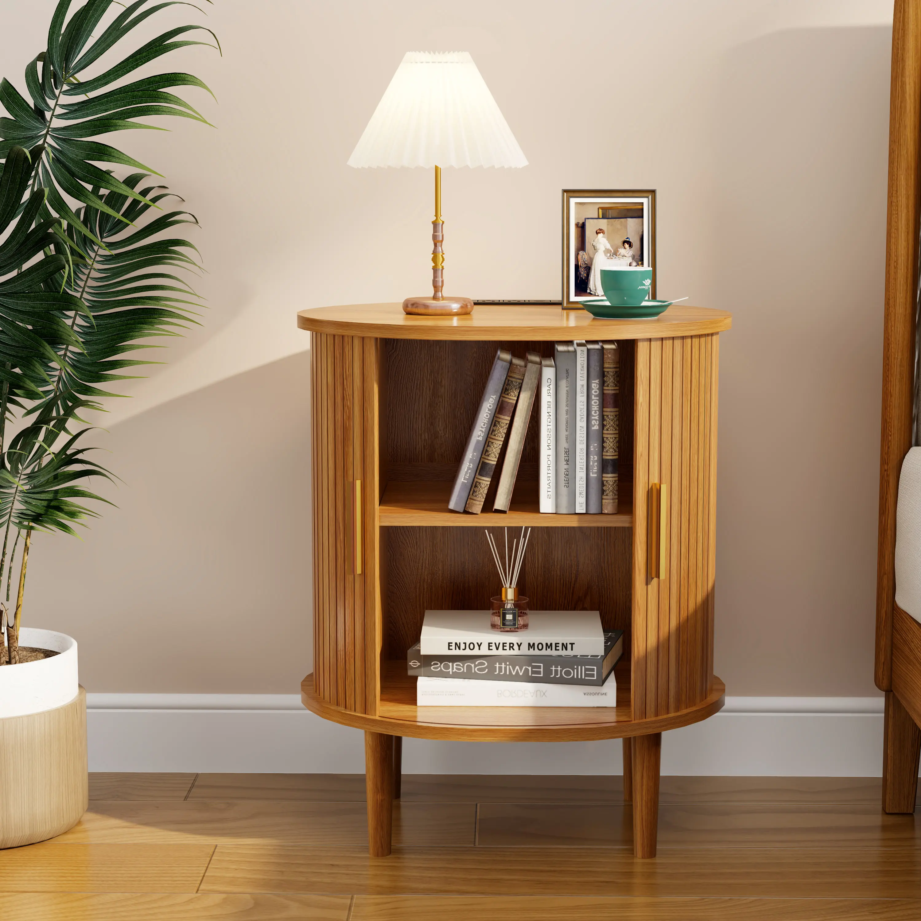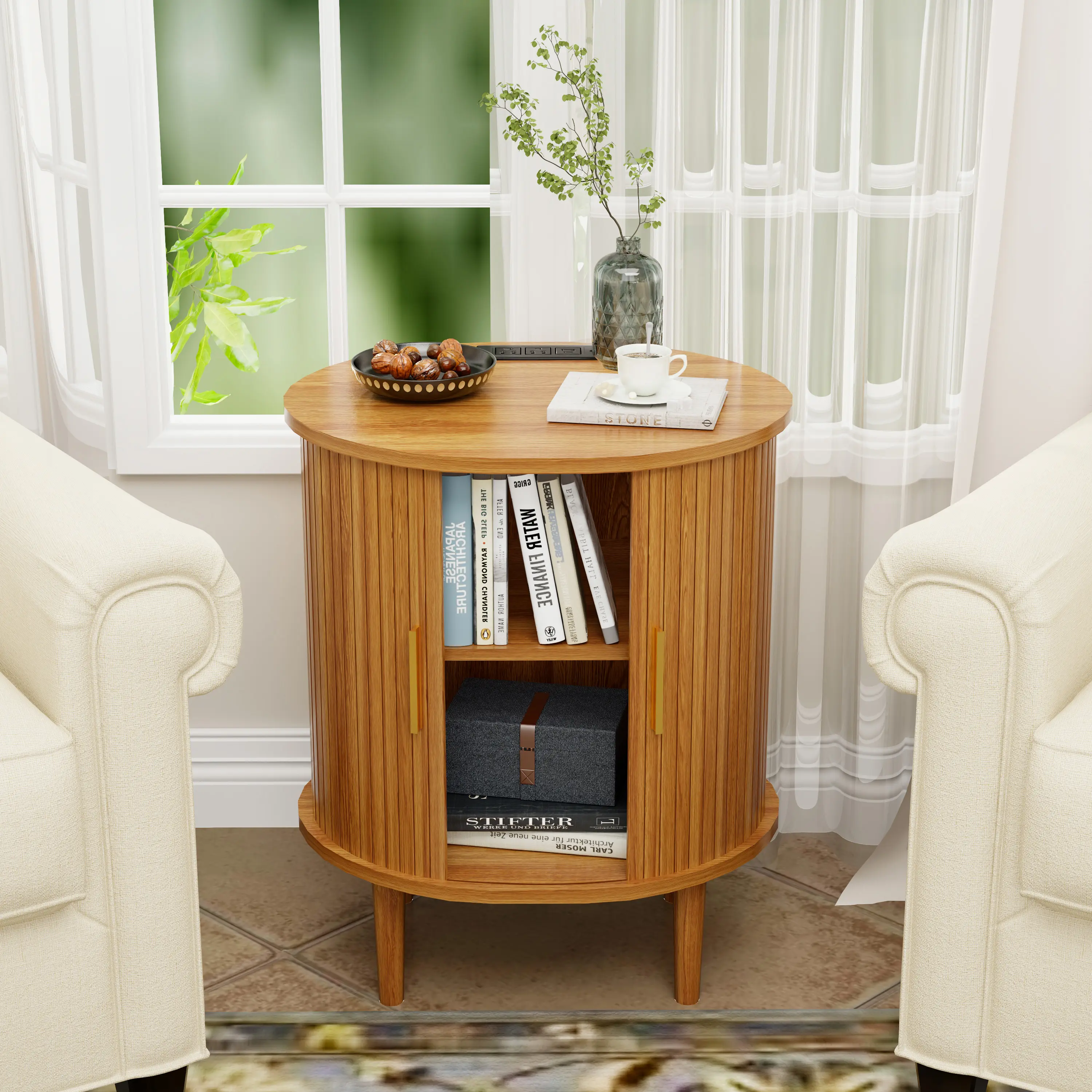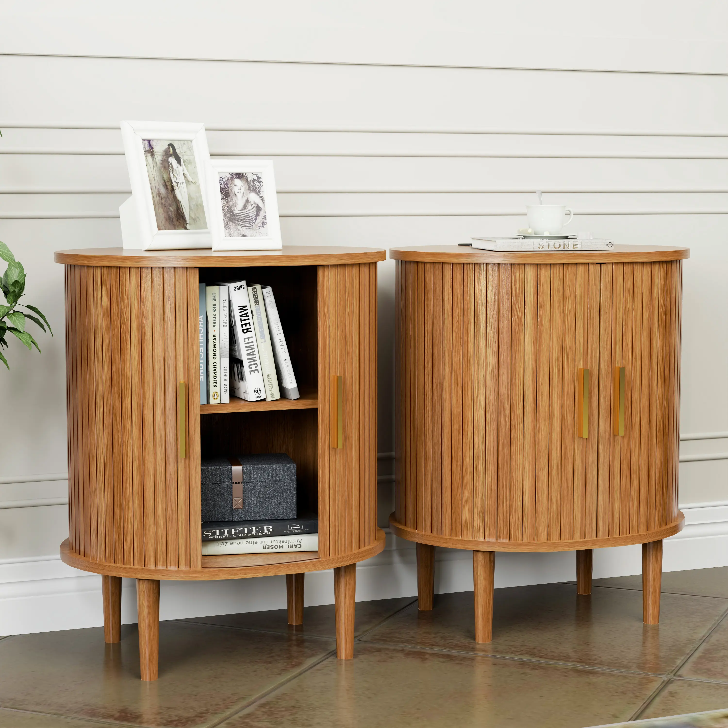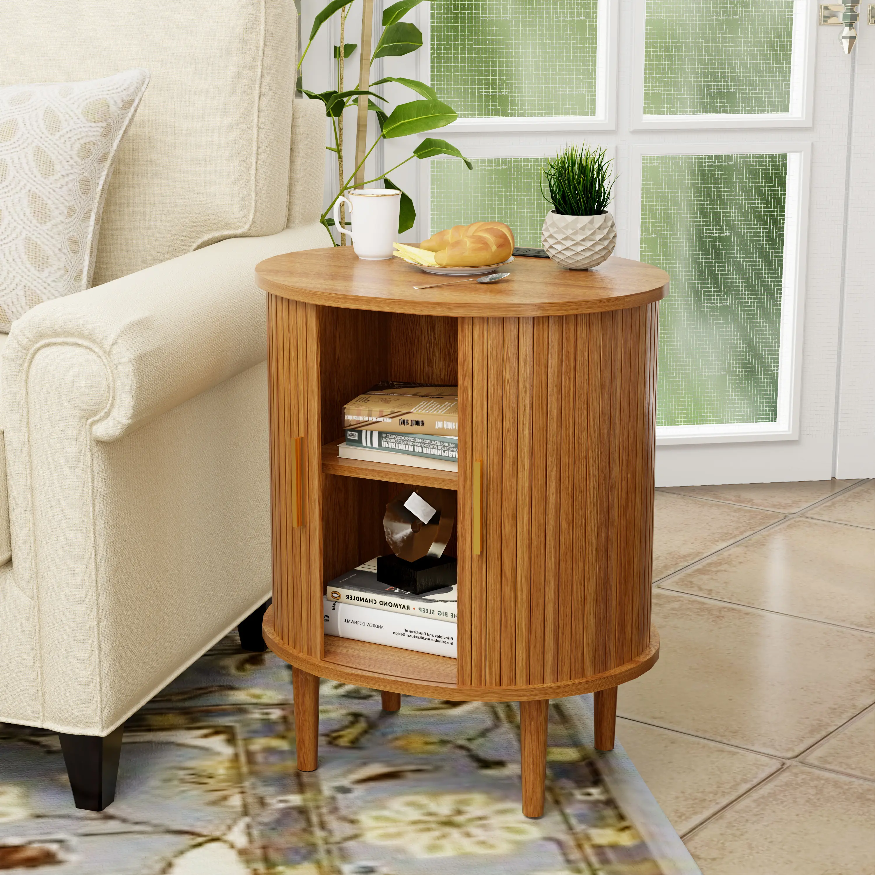 Unique Oval & Fluted Design: The trendy tambour door slides smoothly, offering a minimalist look that hides away clutter.
